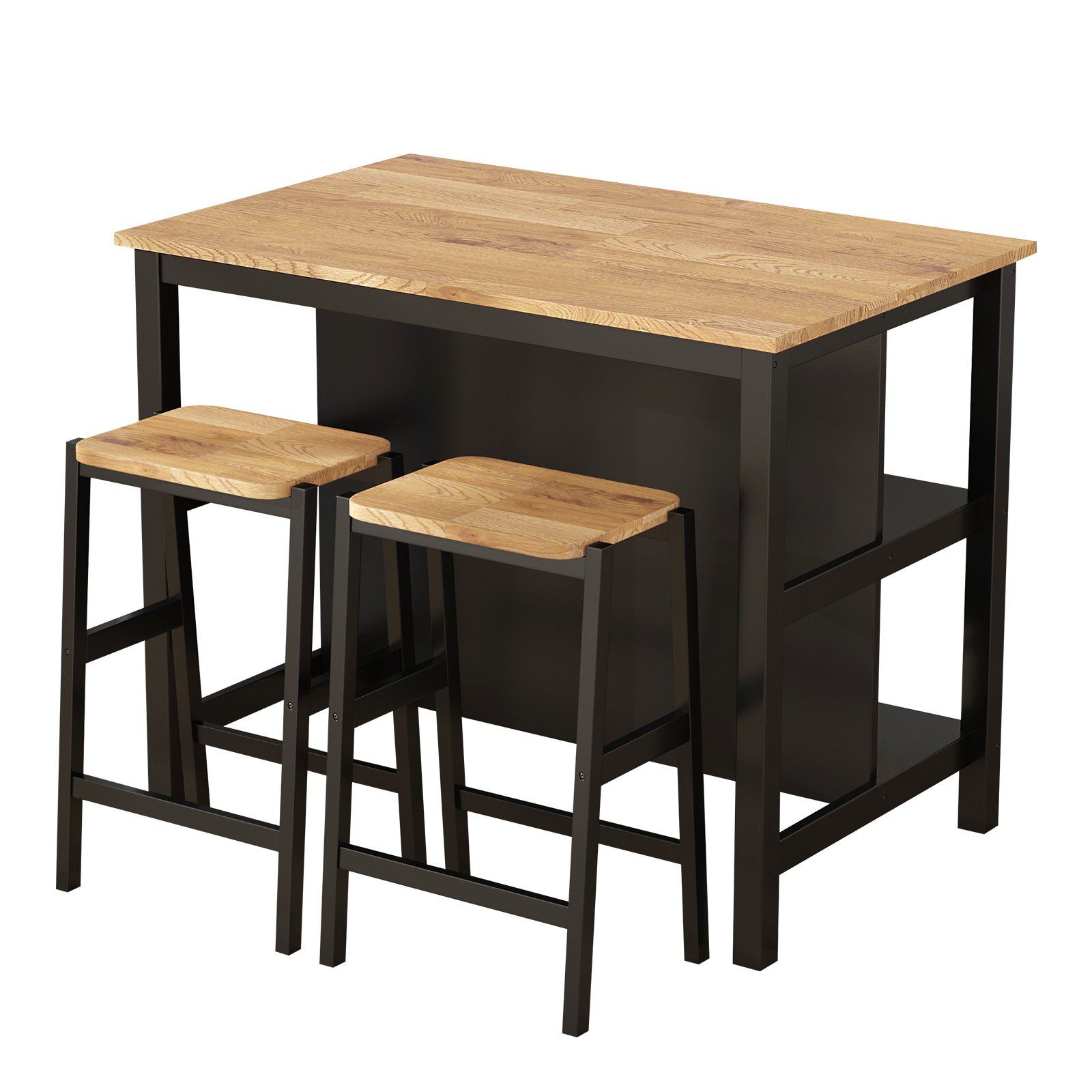 > 3 PCS Dining Table Set Rustic Retro Breakfast Table Dining Stools RubberWood for 2 with Two Open Shelves for Small Space Kitchen Dining Room (=W691656
