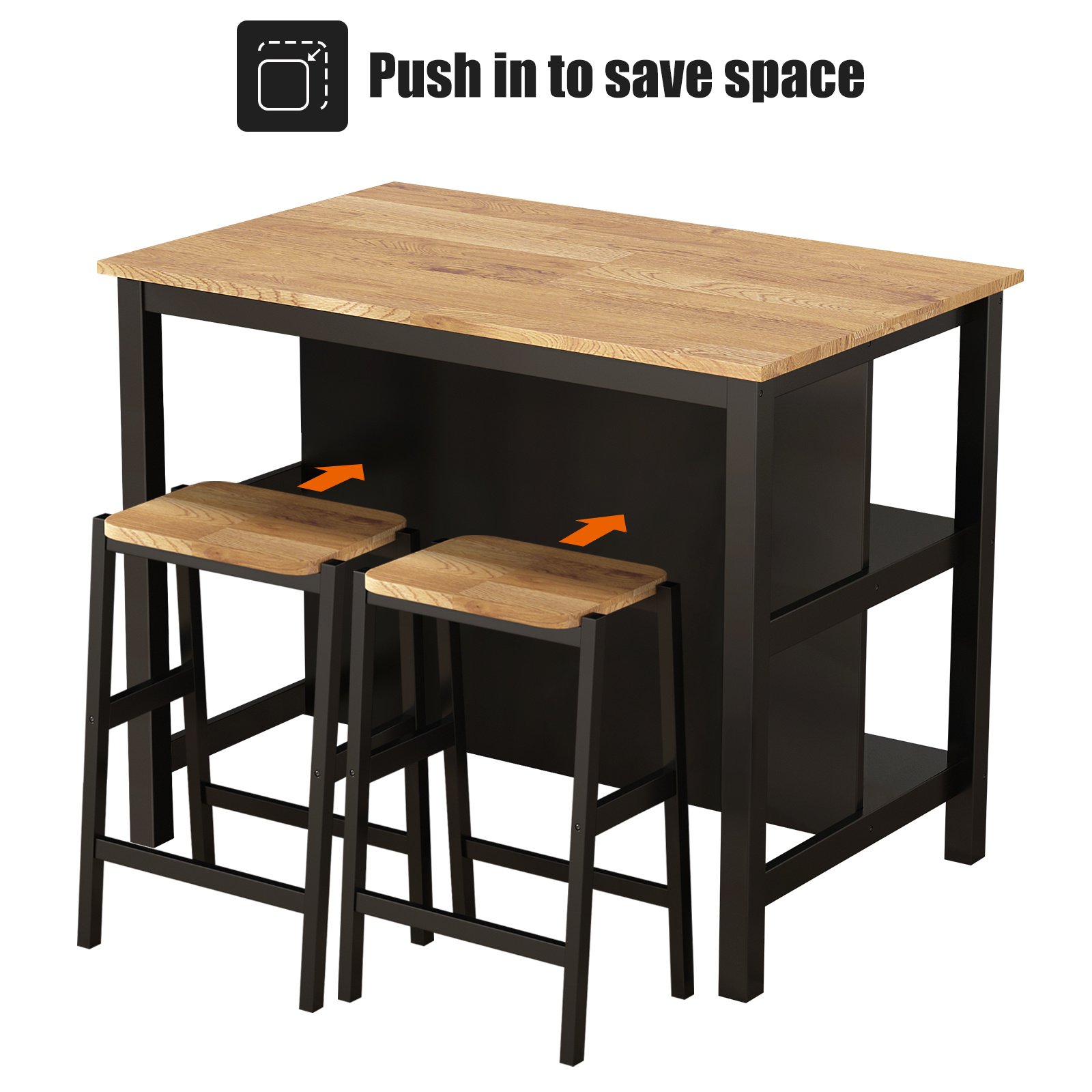 3 PCS Dining Table Set Rustic Retro Breakfast Table Dining Stools RubberWood for 2 with Two Open Shelves for Small Space Kitchen Dining Room (=W691656