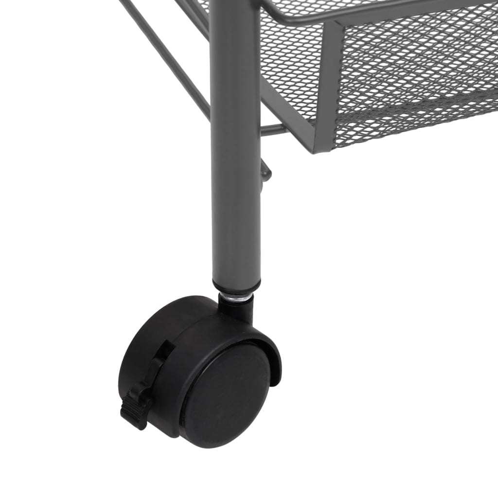This household trolley features an iron construction, making it sturdy and durable. The space-saving cart has 4 wheels, and 2 wheels have brakes for easy moving and stalling. The mesh baskets are strong and removable, which provide additional storage space and make full use of the room. The trolley is ideal for storing toys, keys, food, etc.
