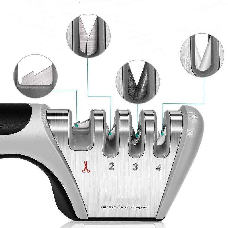 The 4N1 Knife Sharpener has 4 uniquely designed slots each with its own purpose.