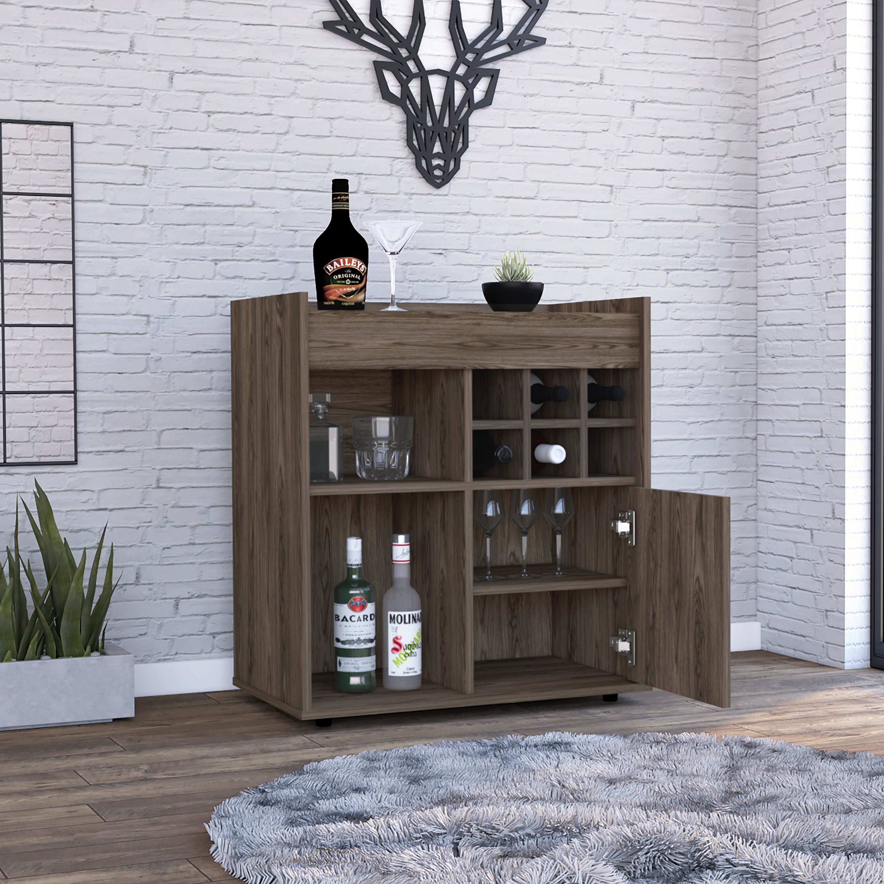 Bar Cabinet Dext, Two Concealed Shelves, Six Wine Cubbies, Dark Walnut Finish