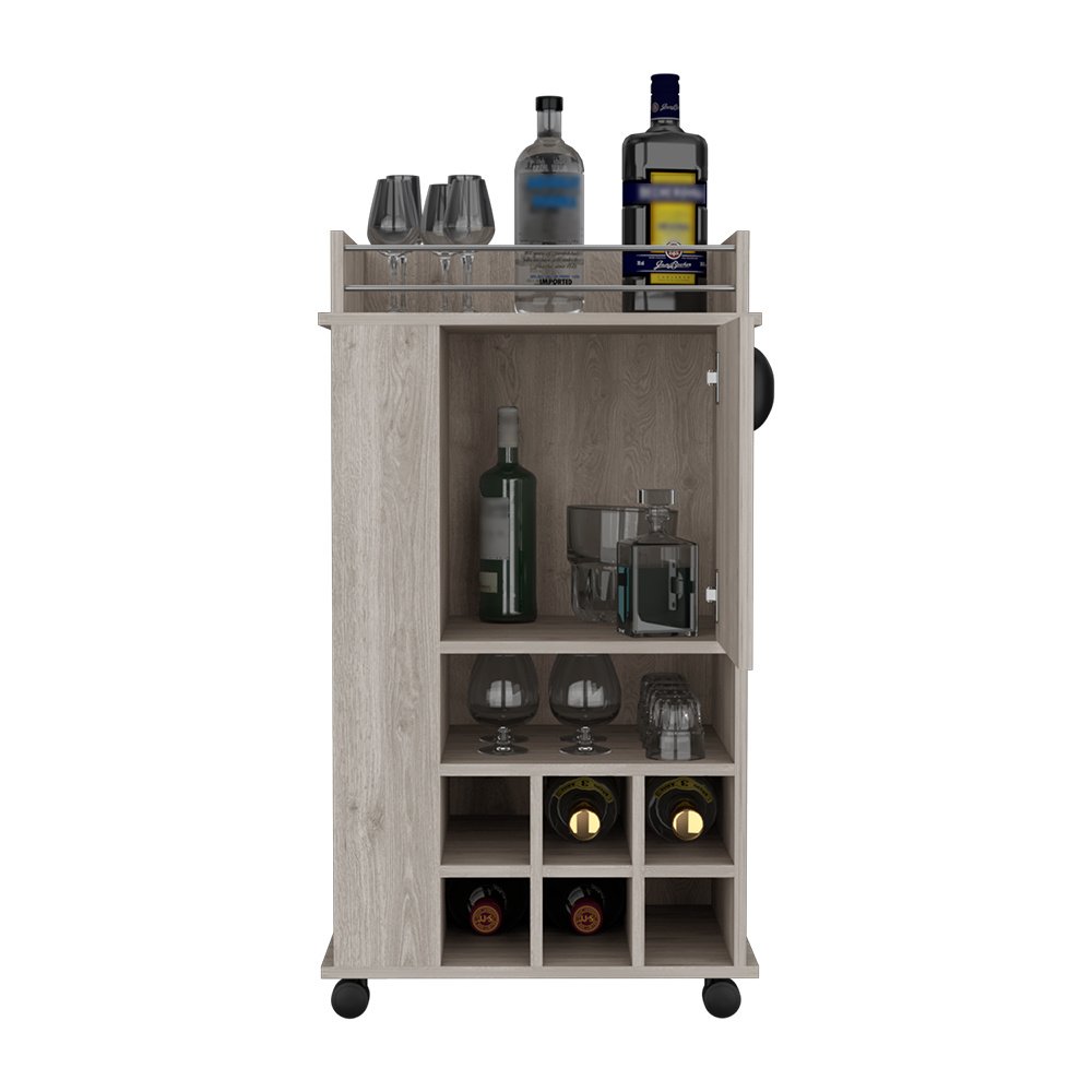 Bar Cart with Casters Reese, Six Wine Cubbies and Single Door, Light Gray Finish