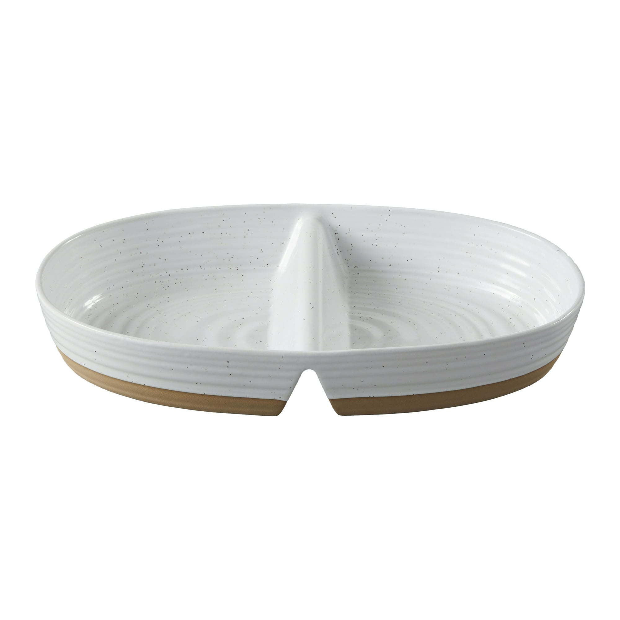 Home > Better Homes & Gardens Abbott Exposed Clay Stoneware Divided Serving Tray, White Speckled, Oval