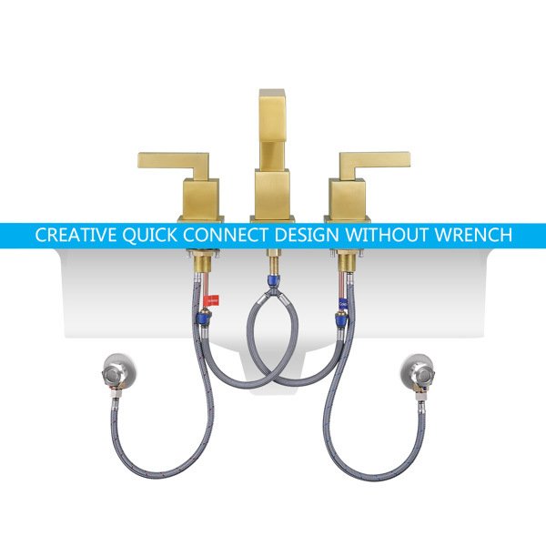 Mounting Type Deck MountFinish Type Brushed GoldMaterial Stainless Steel, Plastic, Acrylonitrile Butadiene StyreneColor Brushed GoldNumber of Handles 2Included Components Supply HoseHandle Type LeverInstallation Method WidespreadMaximum Flow Rate 1.8 Gallons Per MinuteItem Dimensions LxWxH 14.57*11.81*3.54 inchesHandle Material Stainless SteelSpout Height 3.7 InchesSpout Reach 5.1 InchesHandle Location HorizontalManufacturer xingzuohuwaiItem Weight 3.81 poundsProduct Dimensions 14.57*11.81*3.54 inchesIs Discontinued By Manufacturer NoFinish Brushed GoldUsage Commercial/Residential