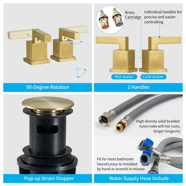 [Exquisite Design] This Lavatory Faucets has double straight handles that are convenient for Preciser and easier Control in water temperature and volume, The easy-to-clean nozzle is convenient for your daily cleaning, is suitable for most bathroom designs.