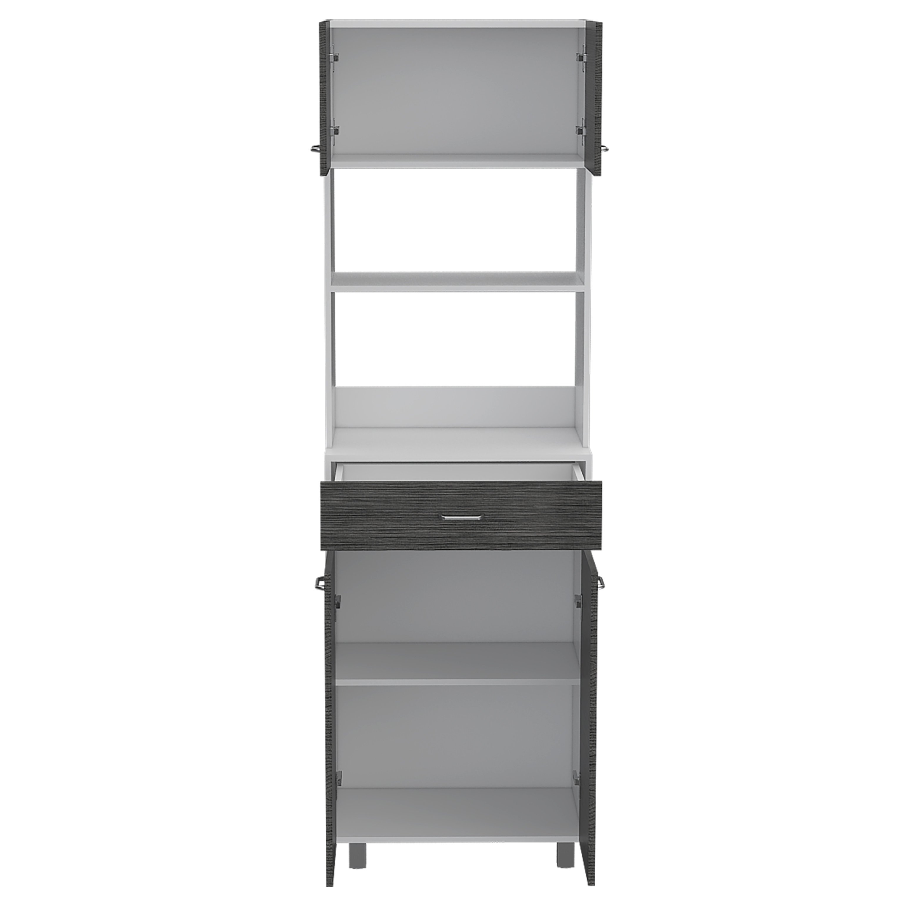 Home > Caribe Microwave Cabinet, Four Legs, One Drawer, Double Door, One Shelf -White / Smokey Oak