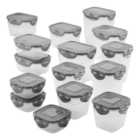 30-Piece Leak-Proof Stacking Food Storage Container Set, Gray Lids