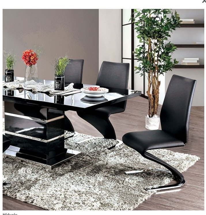 Product Description:-Upgrade your home and never look back to the old. This contemporary dining set is brimming with shine and style. Flanking the this sleek table are Z-styled seats wrapped in a tight leatherette, that radiate futuristic appeal without sacrificing comfort.Product Dimensions:-2x Side Chair: 24 1/2"W X 18"D X 37 1/2"HListing Includes :- 2x Side Chairs Only.DINING TABLE :- NOT INCLUDED.Simple assembly require.Product Features:-ContemporaryBlack, ChromeLeatherette, Metal, OthersZ-Shaped Chair BaseIncludes 2 Pieces Per Box