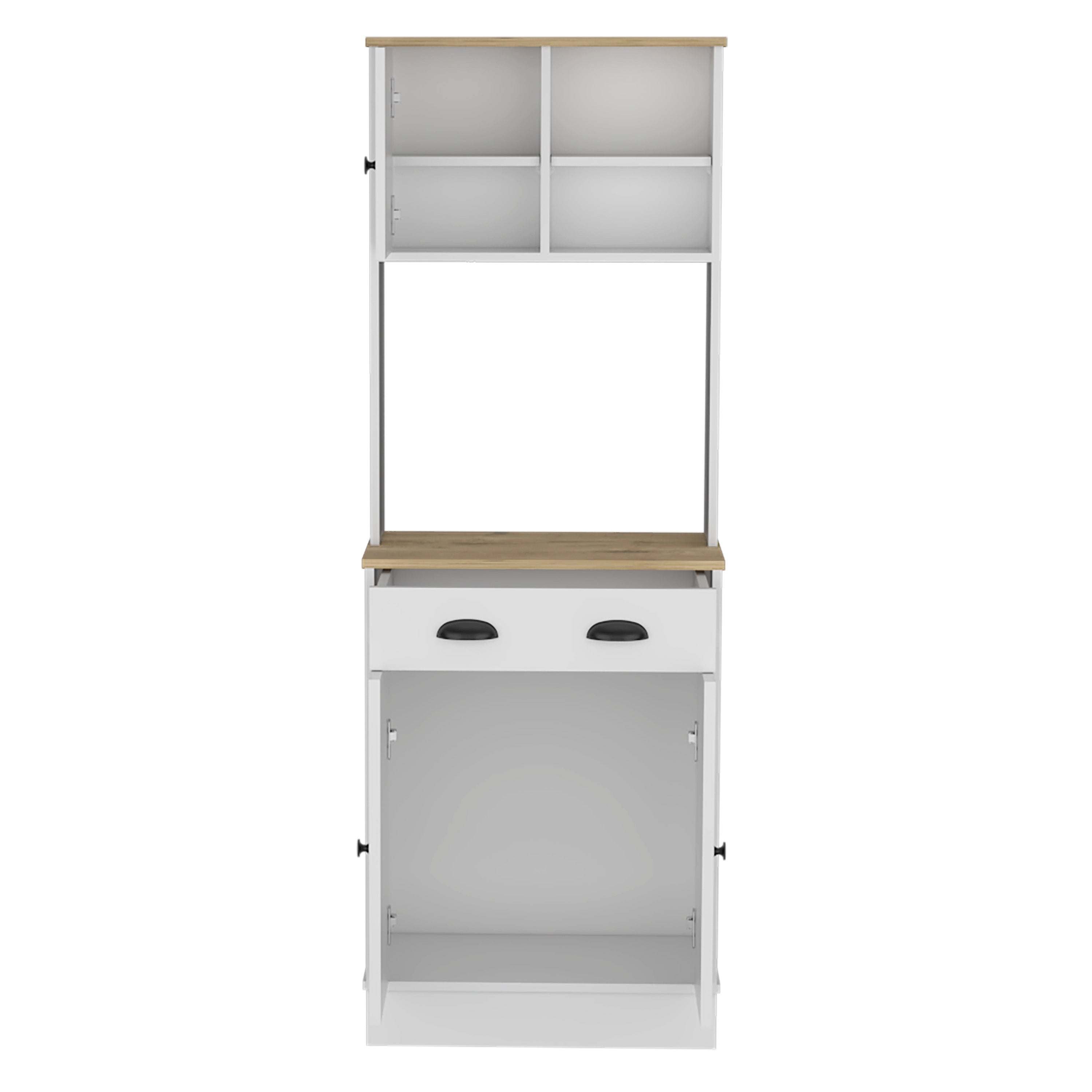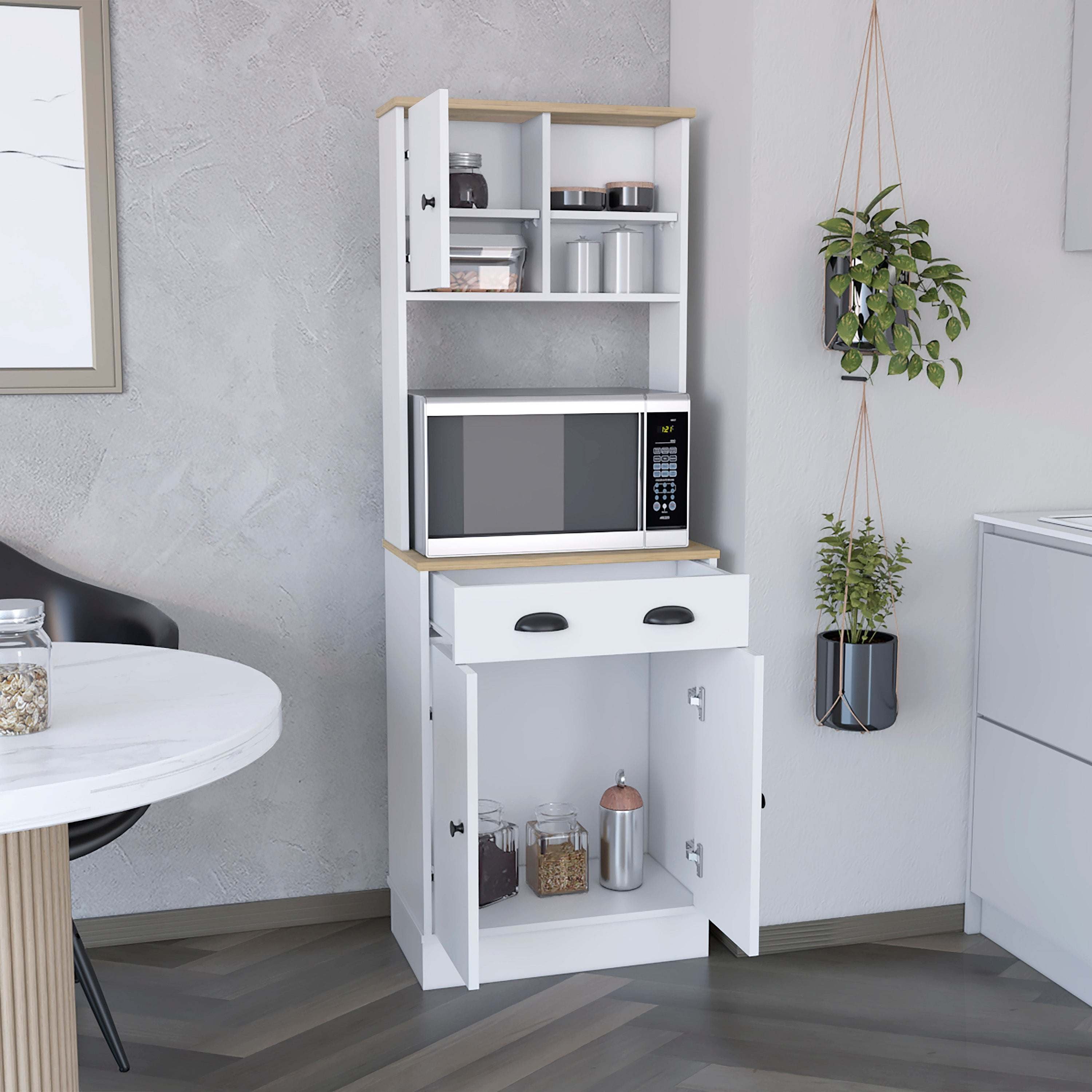 DEPOT E-SHOP Selmer Pantry Cabinet with Drawer and 3-Doors, White / Macadamia