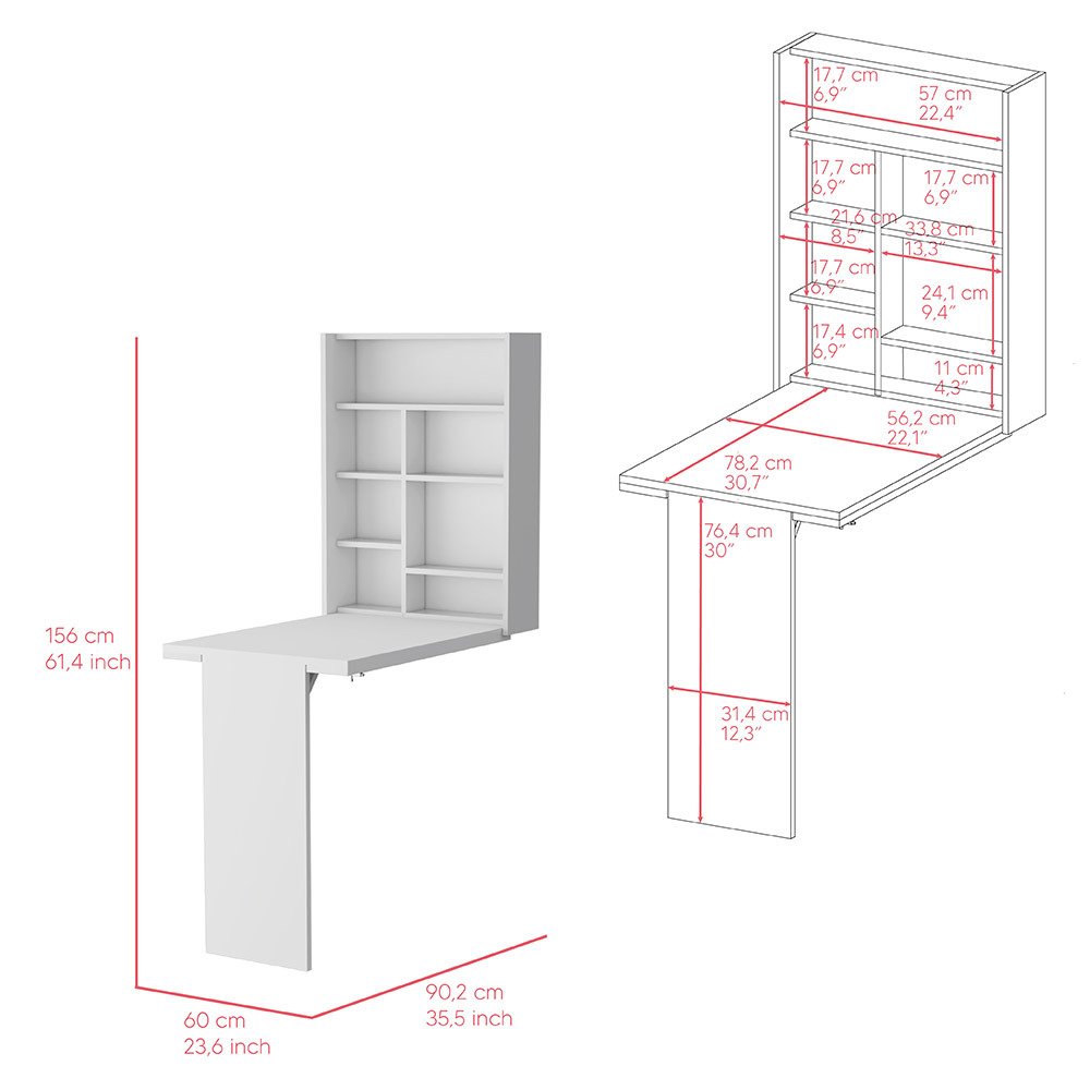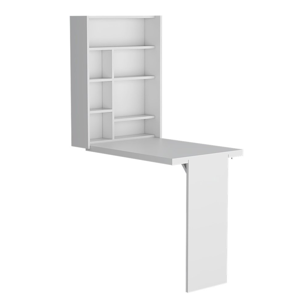 Foldable Table Tacoma, Seven Interior Shelves, White Finish