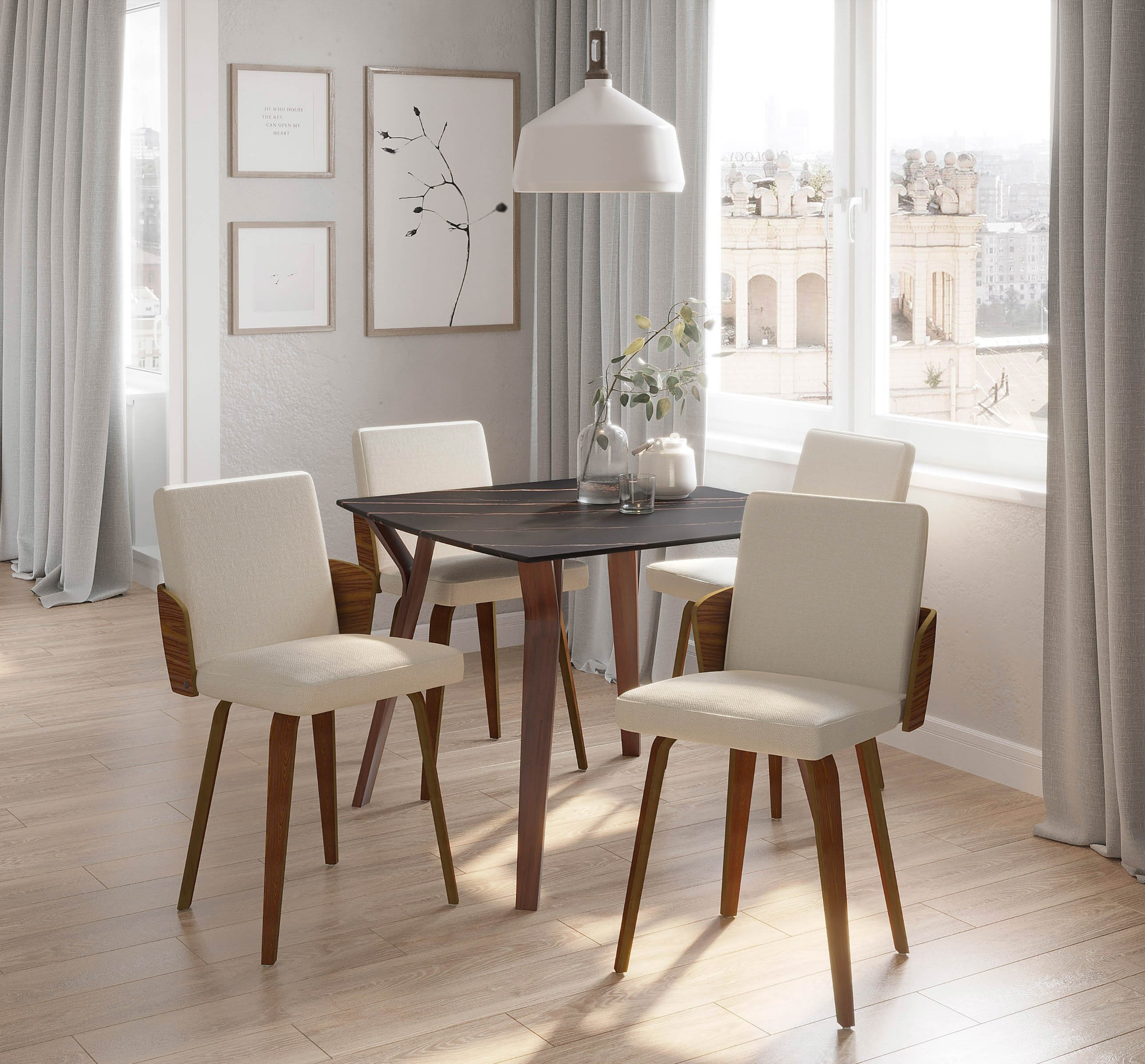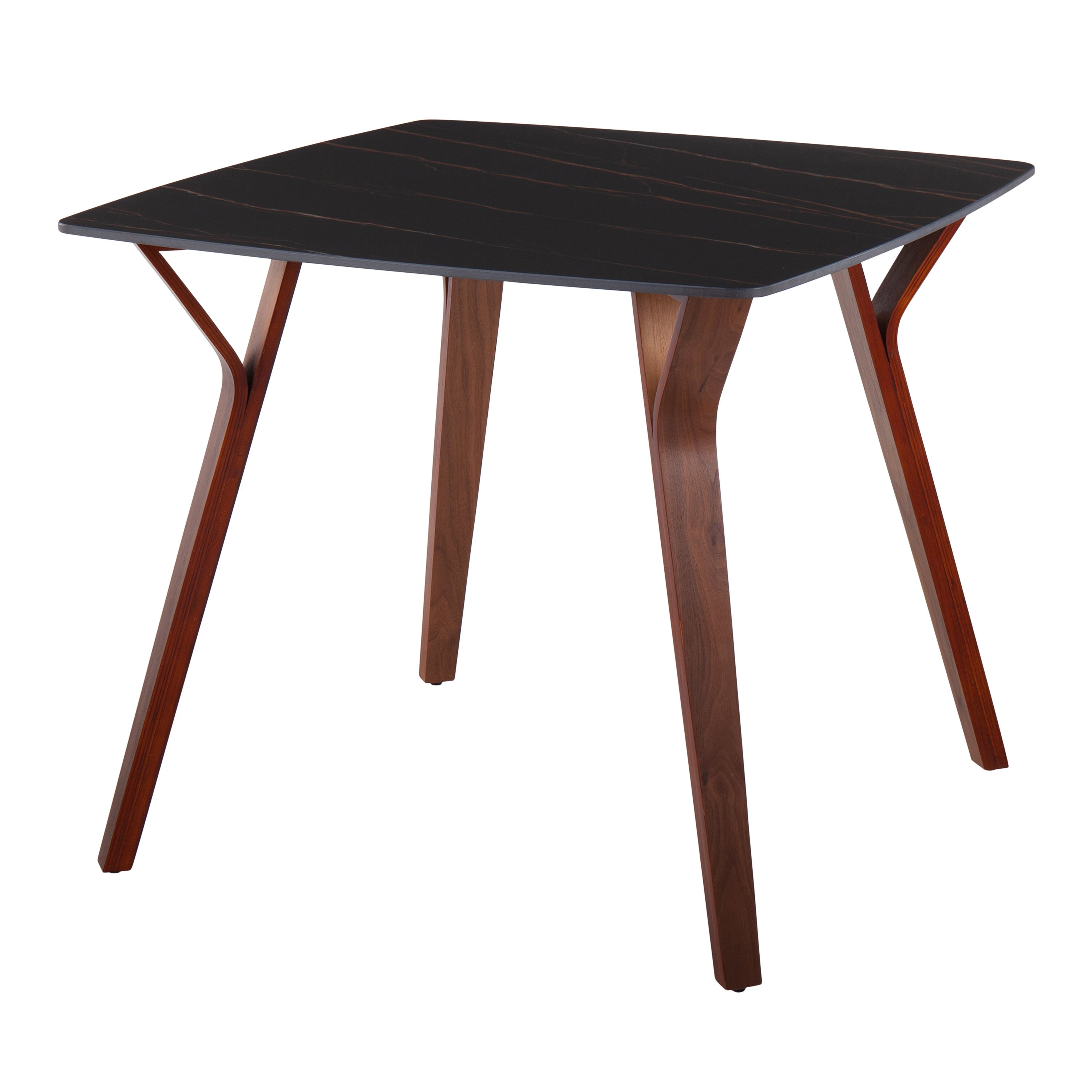 Folia Mid-Century Modern Dinette Table in Walnut Wood and Black Textured Marble by LumiSource