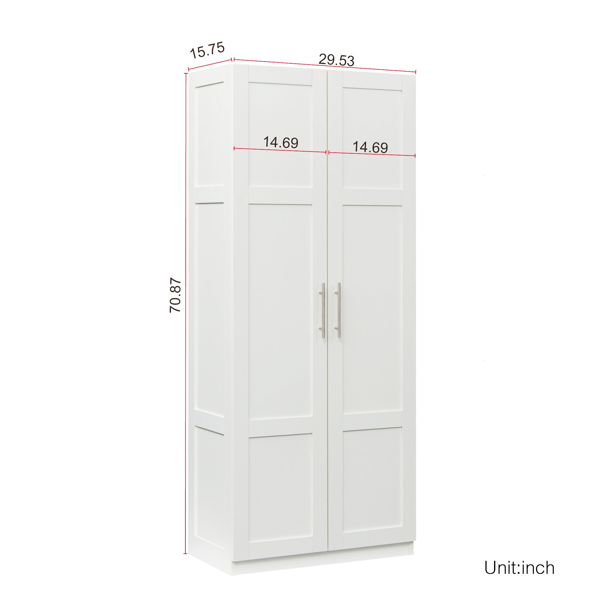 Dimensions: 29.53'W x 15.75' D x70.87'HThere are 2 doors and 3 shelves; which can provide more storage space