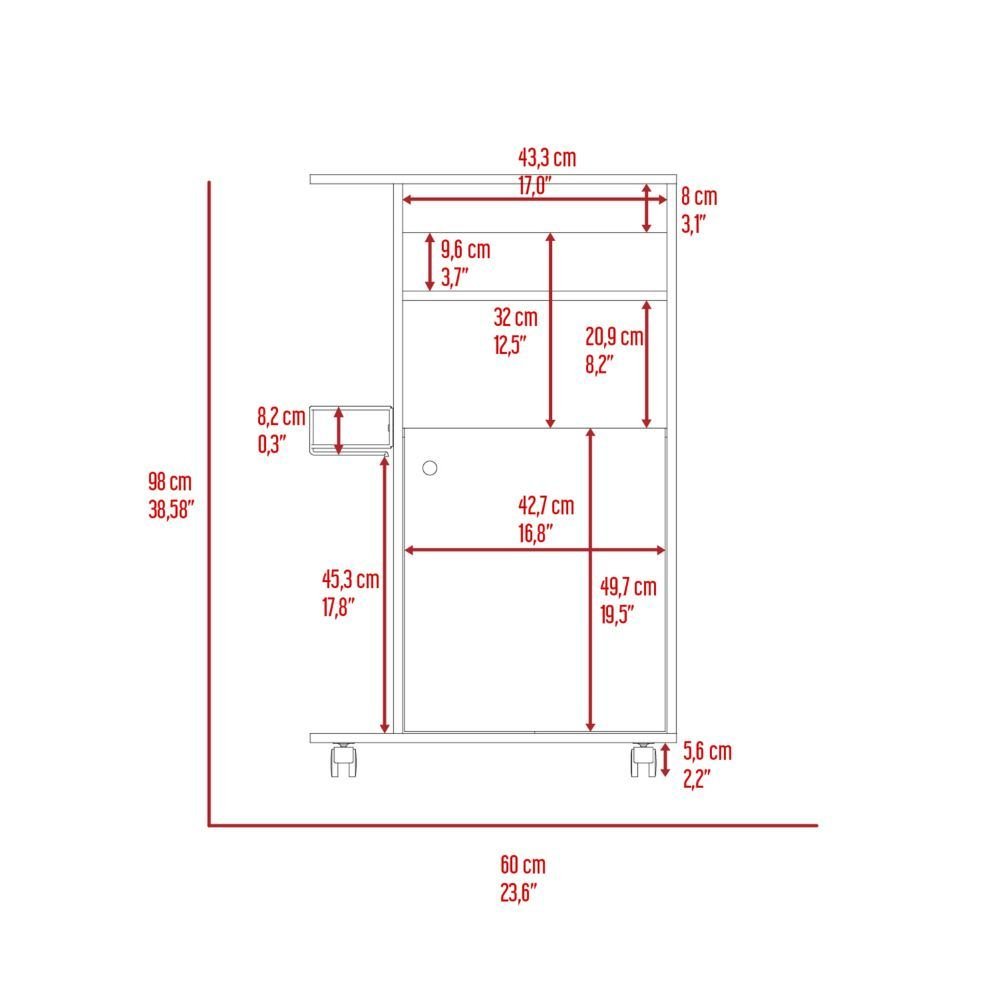 Kitchen Cart Kryot, Single Door Cabinet, Four Casters, Black Wengue Finish