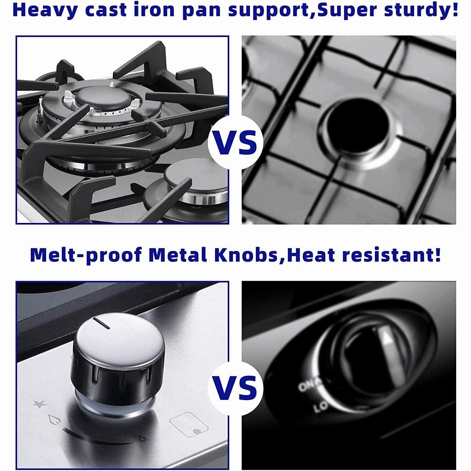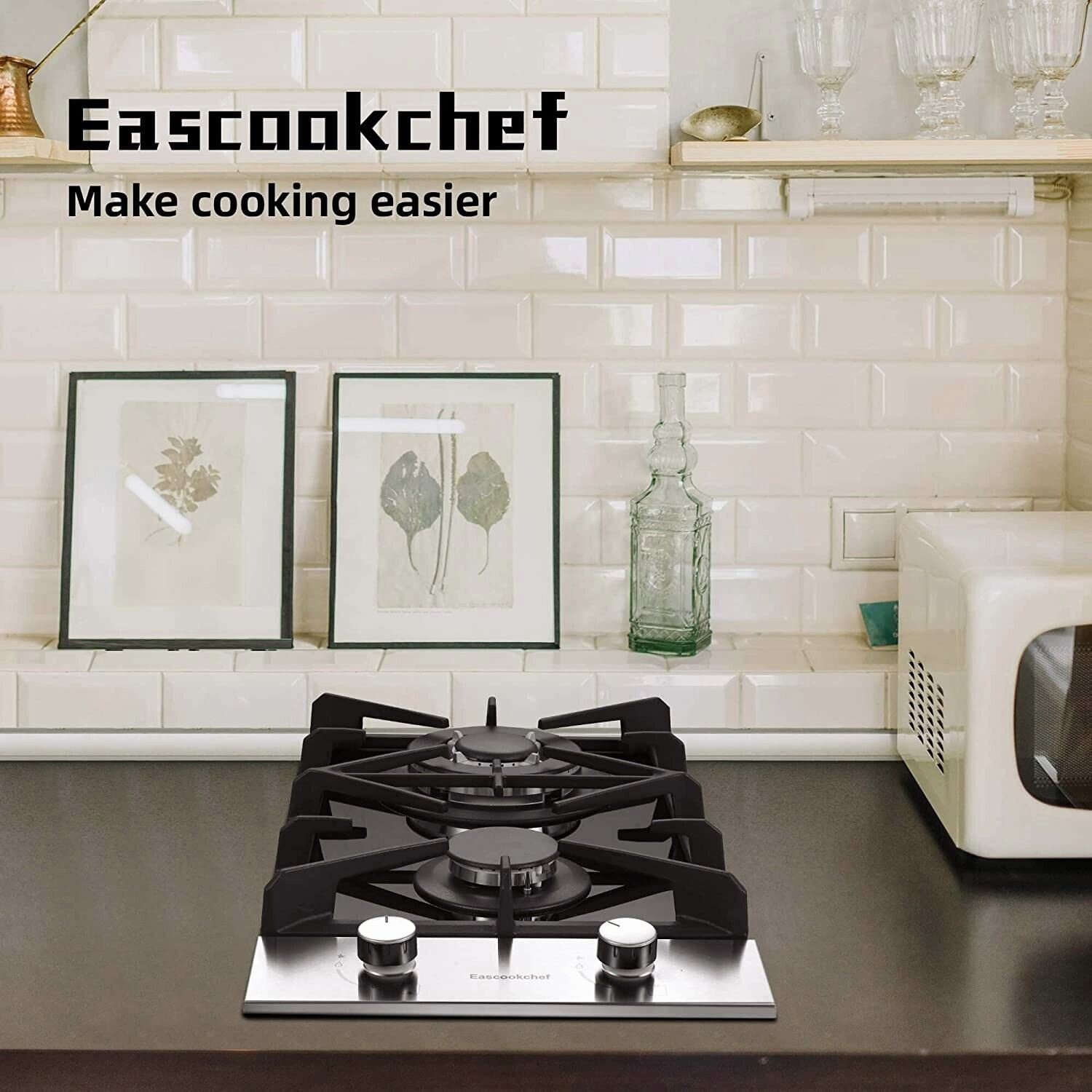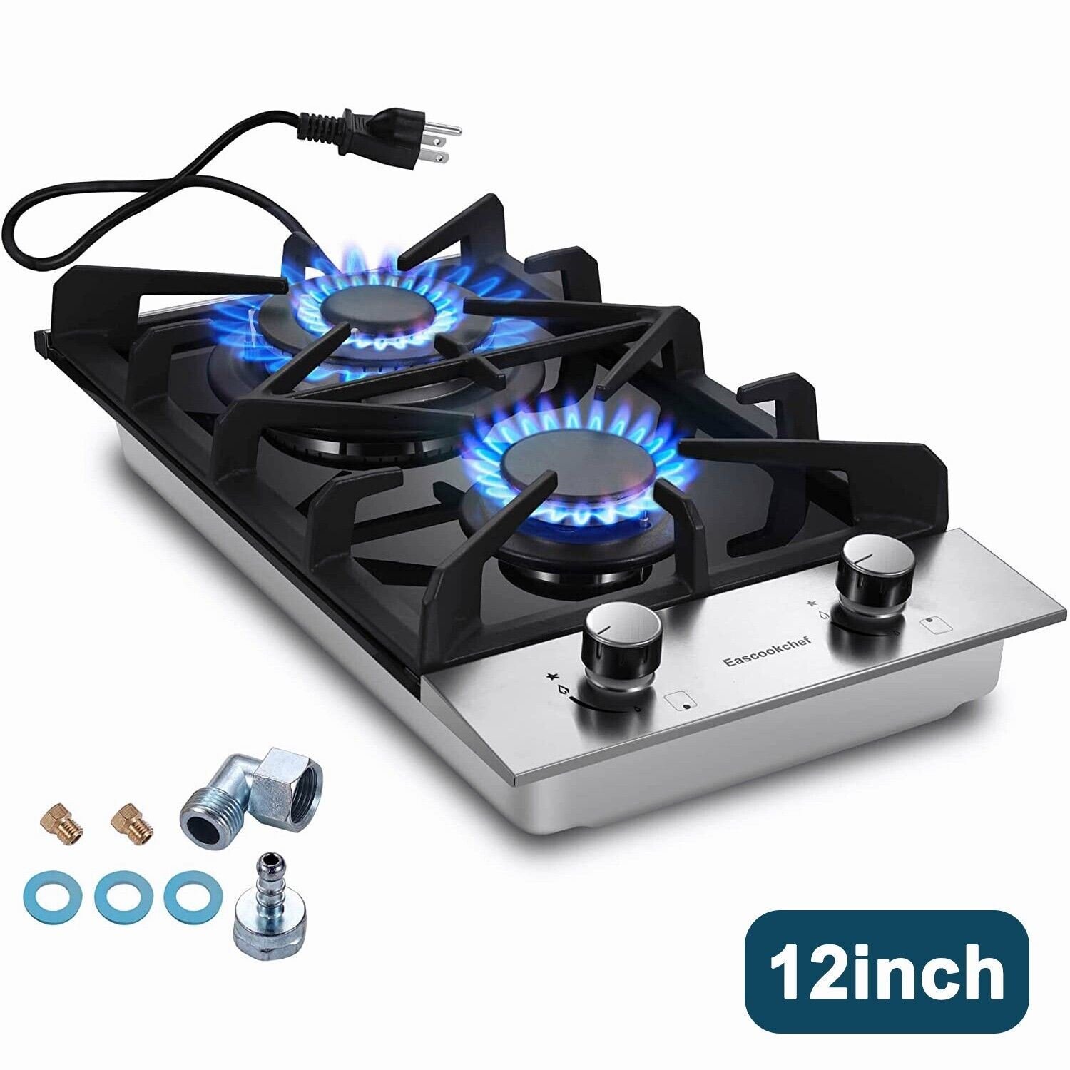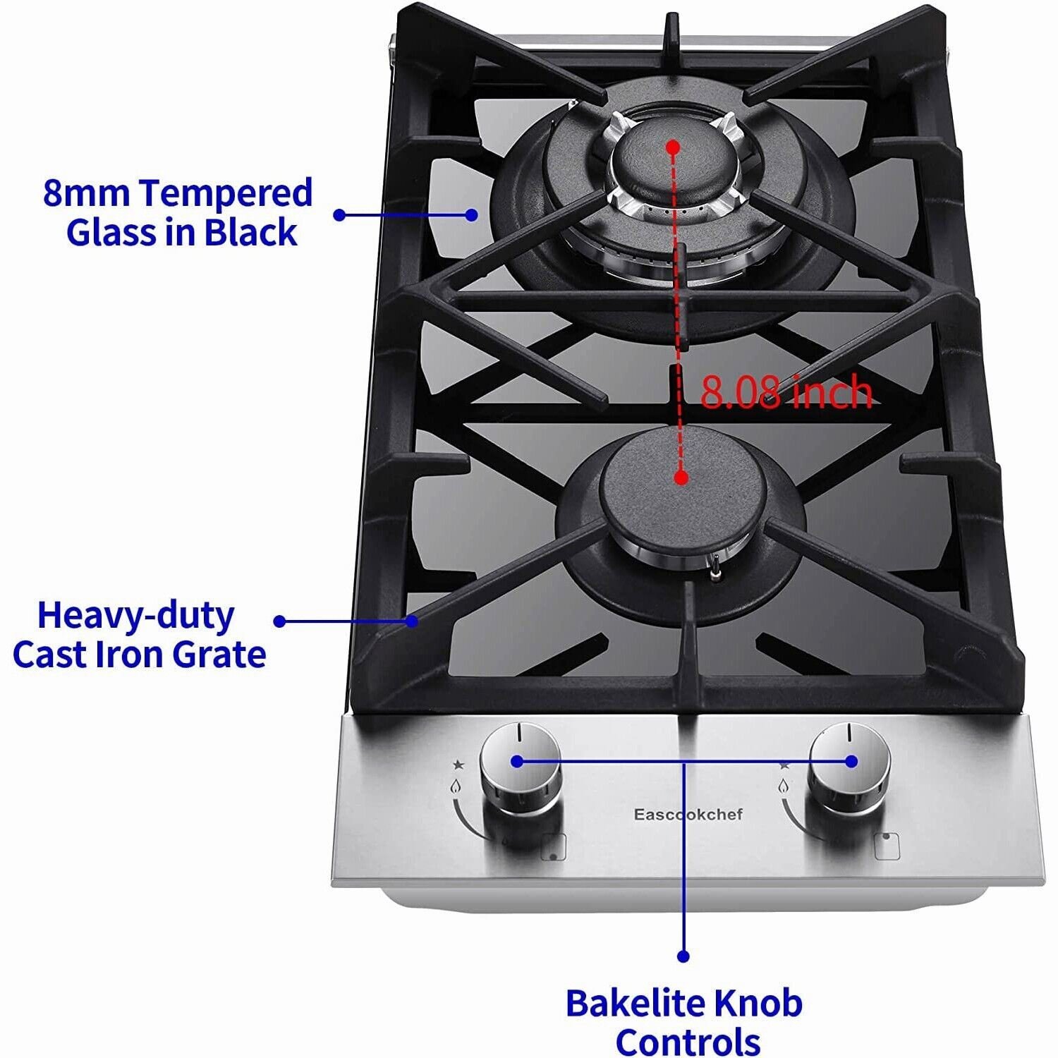 Eascookchef Gas Cooktop 12 inch, 8mm Tempered Glass in Black