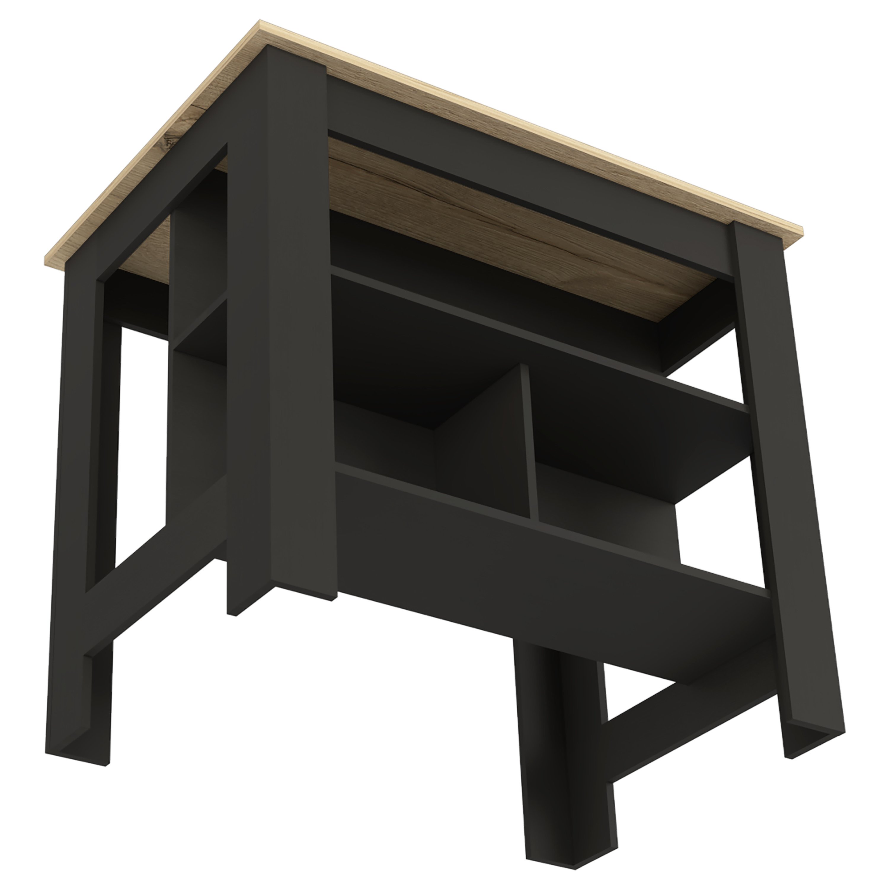 Kitchen Island Dozza, Three Shelves, Black Wengue / Light Oak Finish