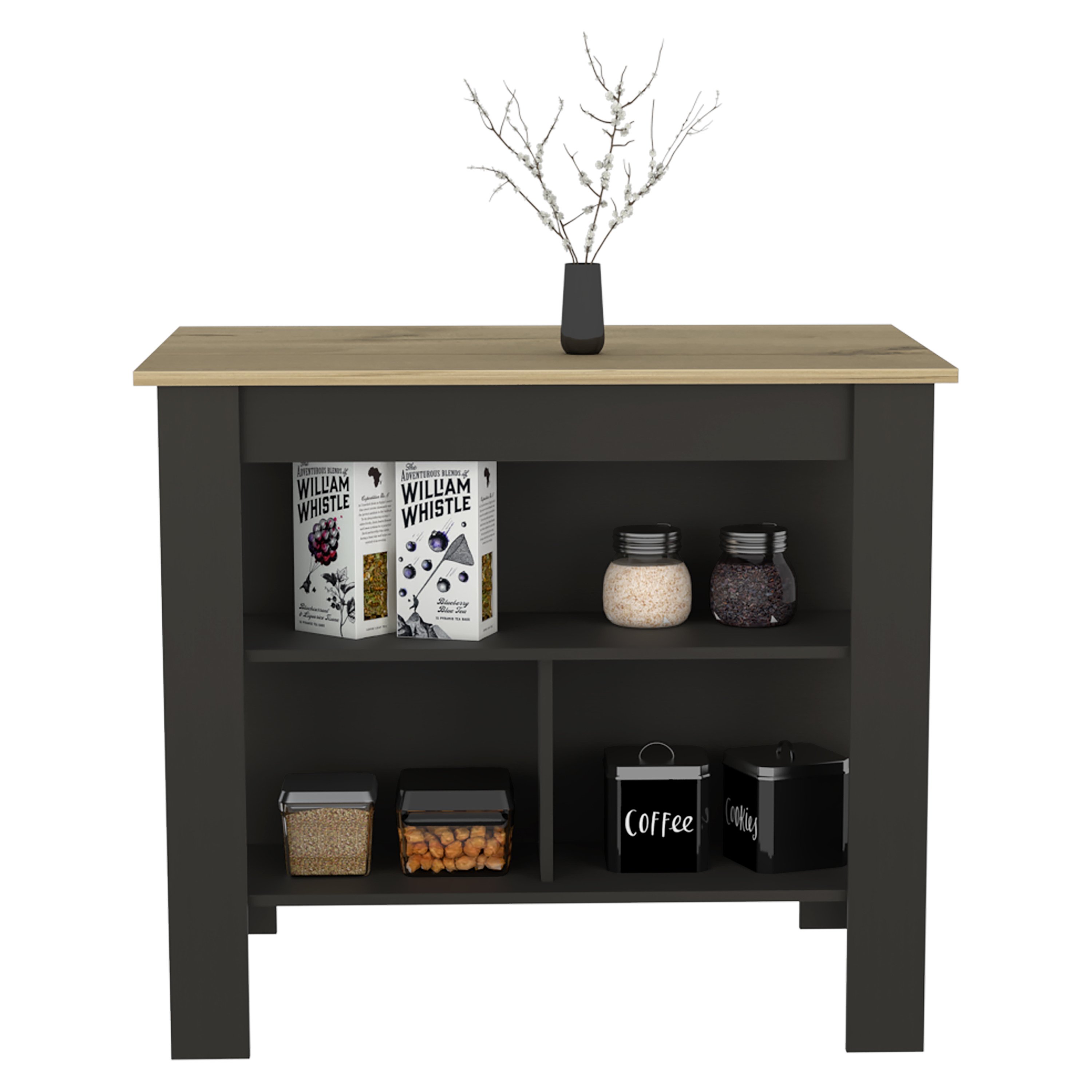 Home > Kitchen Island Dozza, Three Shelves, Black Wengue / Light Oak Finish
