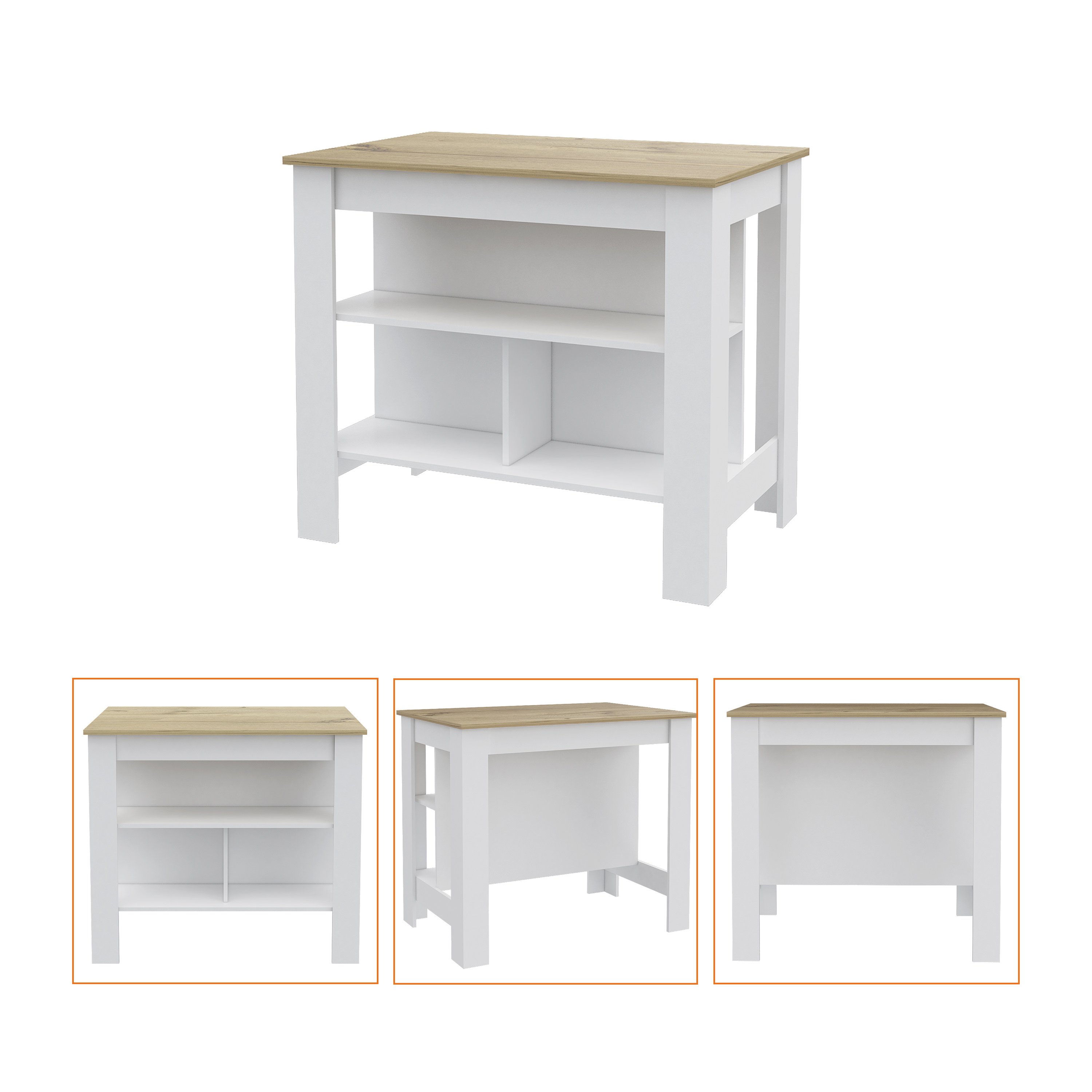 Kitchen Island Dozza, Three Shelves, White / Light Oak Finish