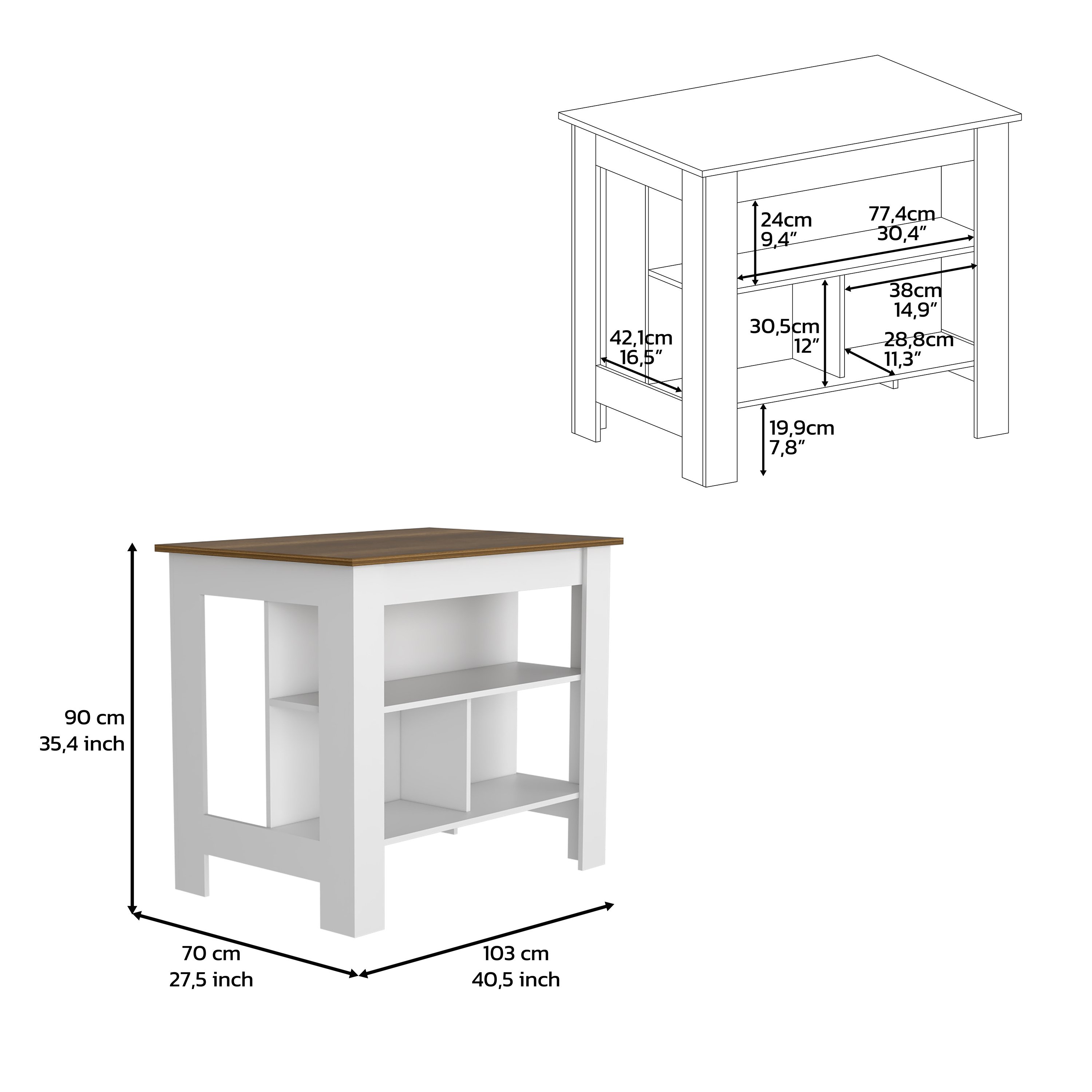Kitchen Island Dozza, Three Shelves, White / Walnut Finish