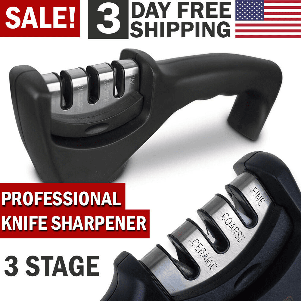 KNIFE SHARPENER Ceramic Tungsten Kitchen Knives Blade Sharpening System Tool USA XH
