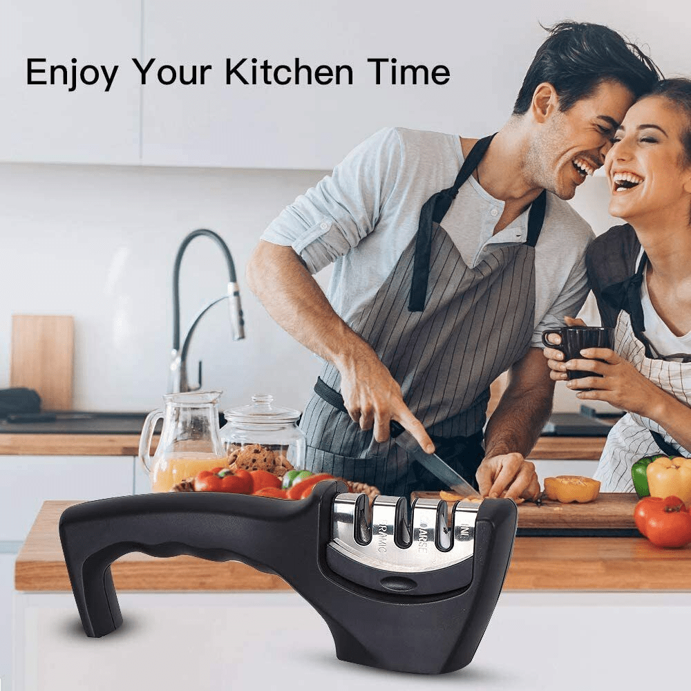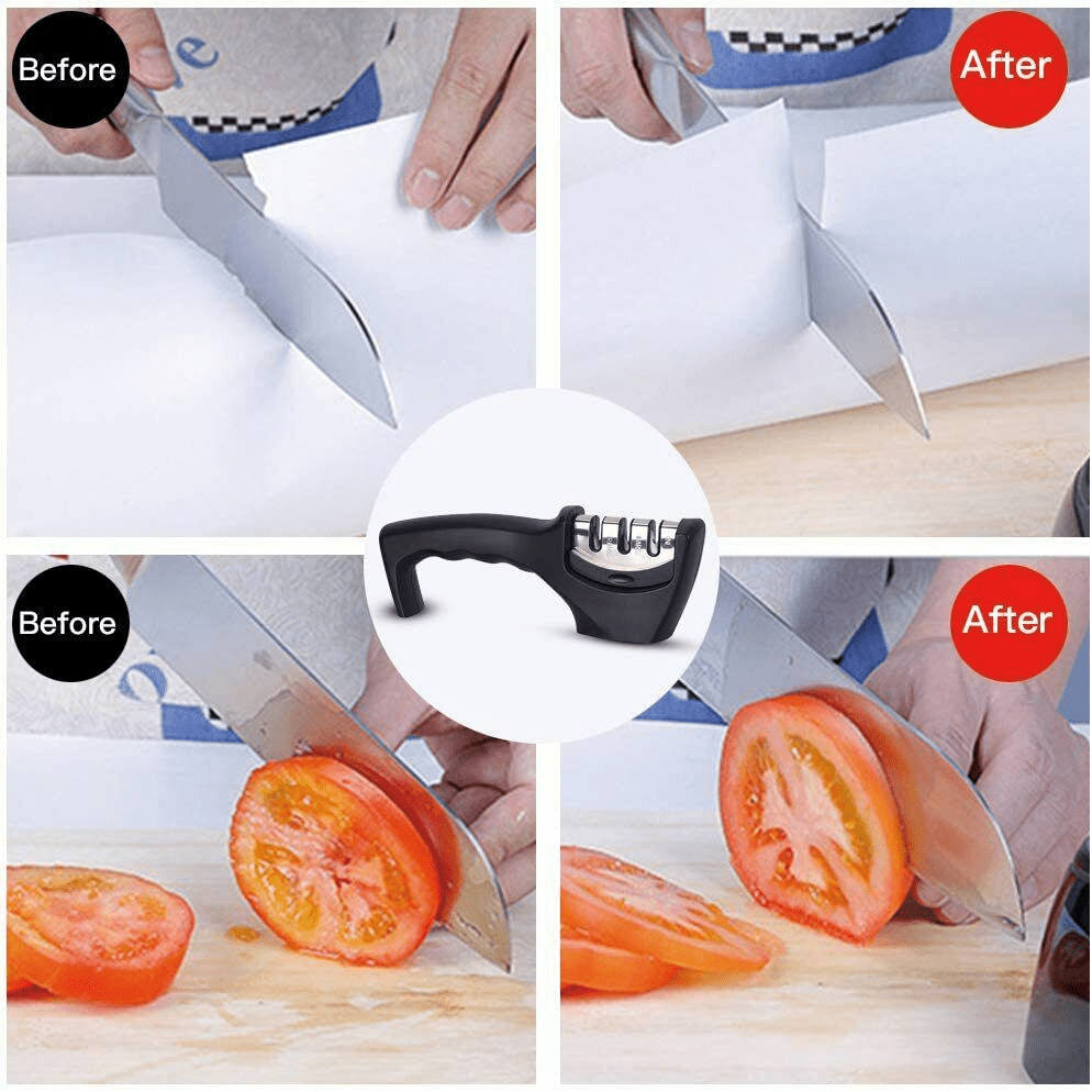 3 Steps; within 10 Seconds; Using our Professional Kitchen Knife Sharpener you will get a sharpened blade as sharp as new.