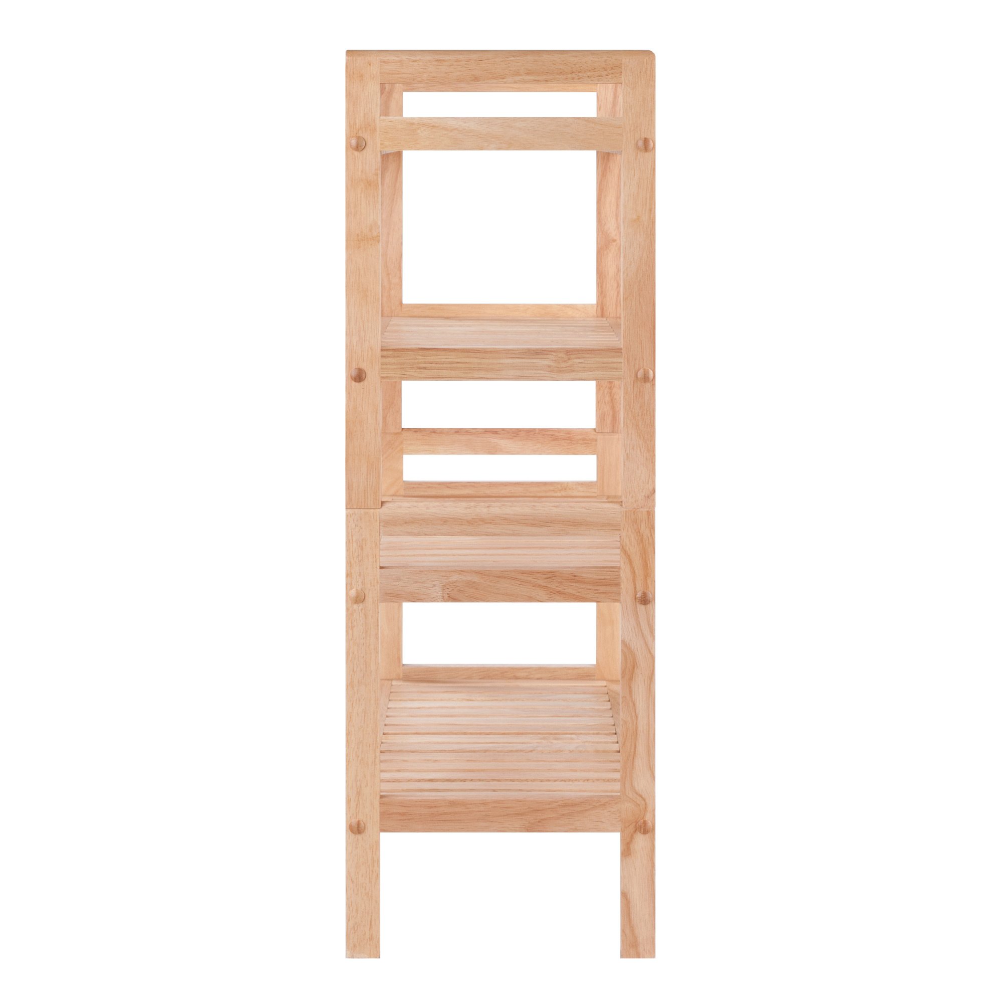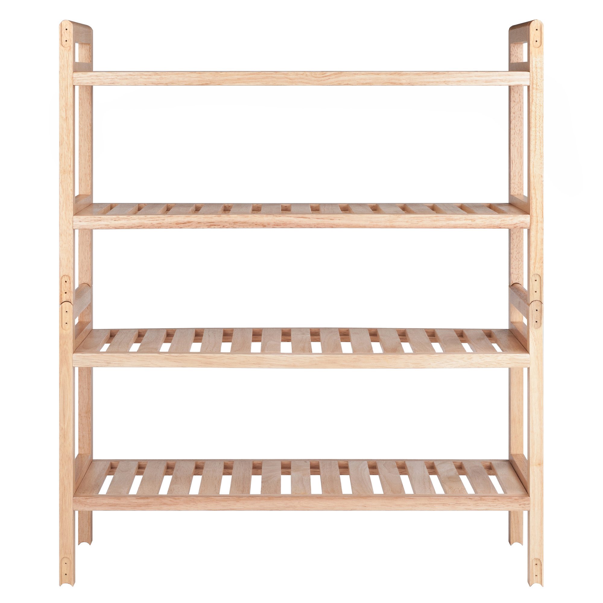 The Mercury 2-piece; stackable shoe rack is ideal for keeping your entryway or mudroom neat and organized. Use the two sections side by side or stack them in a 4-tier unit to fit that right spot in your home. Each of the slatted wood shelves will hold up to 3 pairs of shoes or boots; providing enough shoe storage for the whole family. The set comes with metal brackets to keep the stacked units stable. The rack also makes a great shelf unit in a playroom for storing toys; puzzles and games. Constructed of Solid Wood in a Natural finish; the overall size when the units are stacked is 32"H x 27.2"W x 10.7"D.