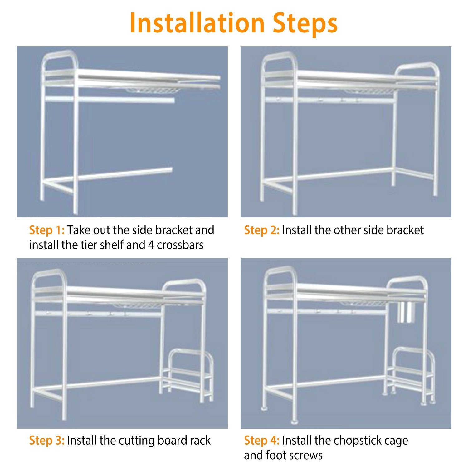 **Kitchen Organizer*:Use multifunctional over sink dish rack with 6pcs hooks,enjoy your cooking every day. With our iMounTEK dish rack,place your ladle,spatula,bowl,dish,knife,seasoning bottle and chopping board in good order.