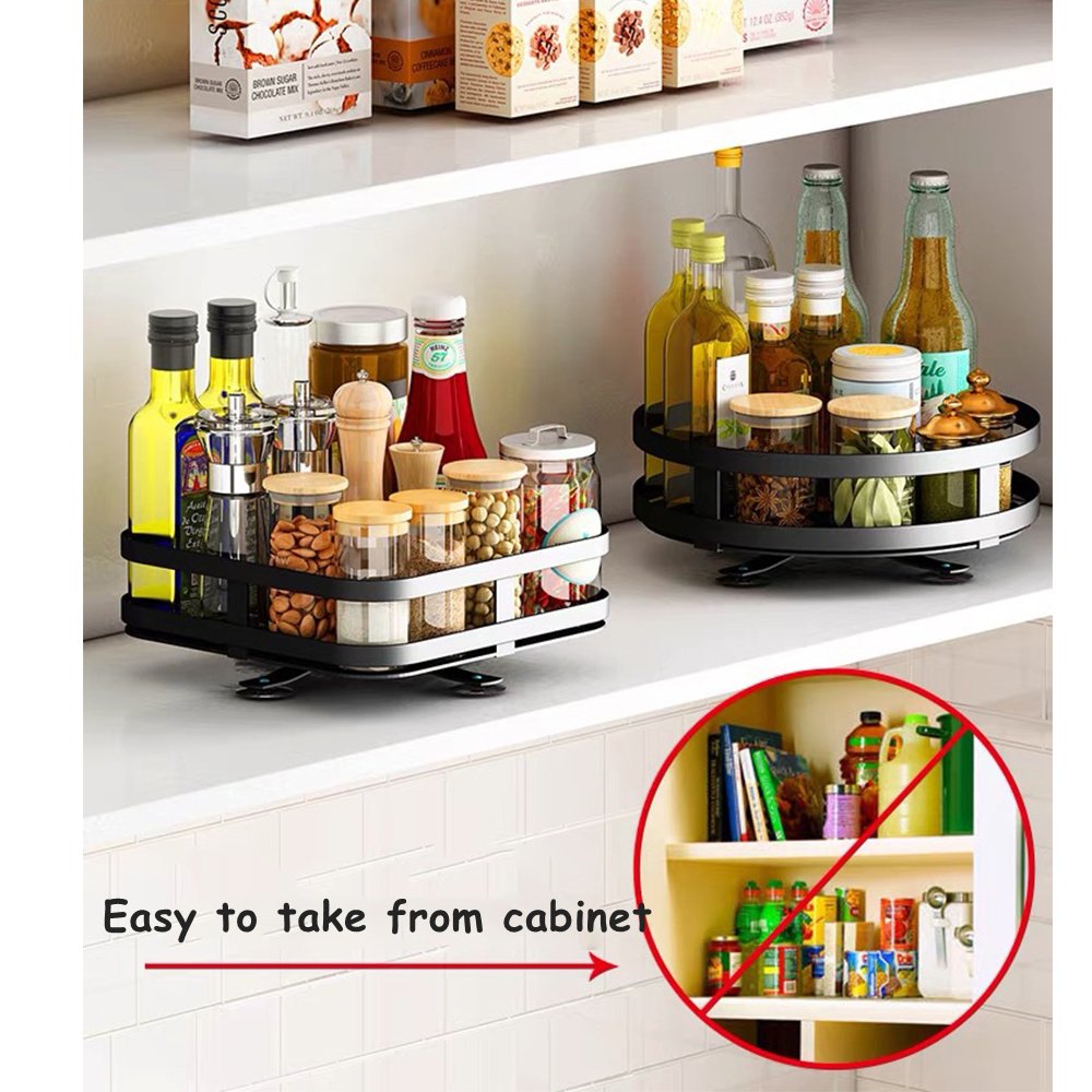 2.Easy to take bottles and jars from this rotating lazy Susan turntable.