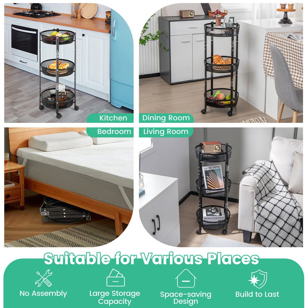 Home > 3-Tier Folding Metal Storage Rack Rolling Utility Cart
