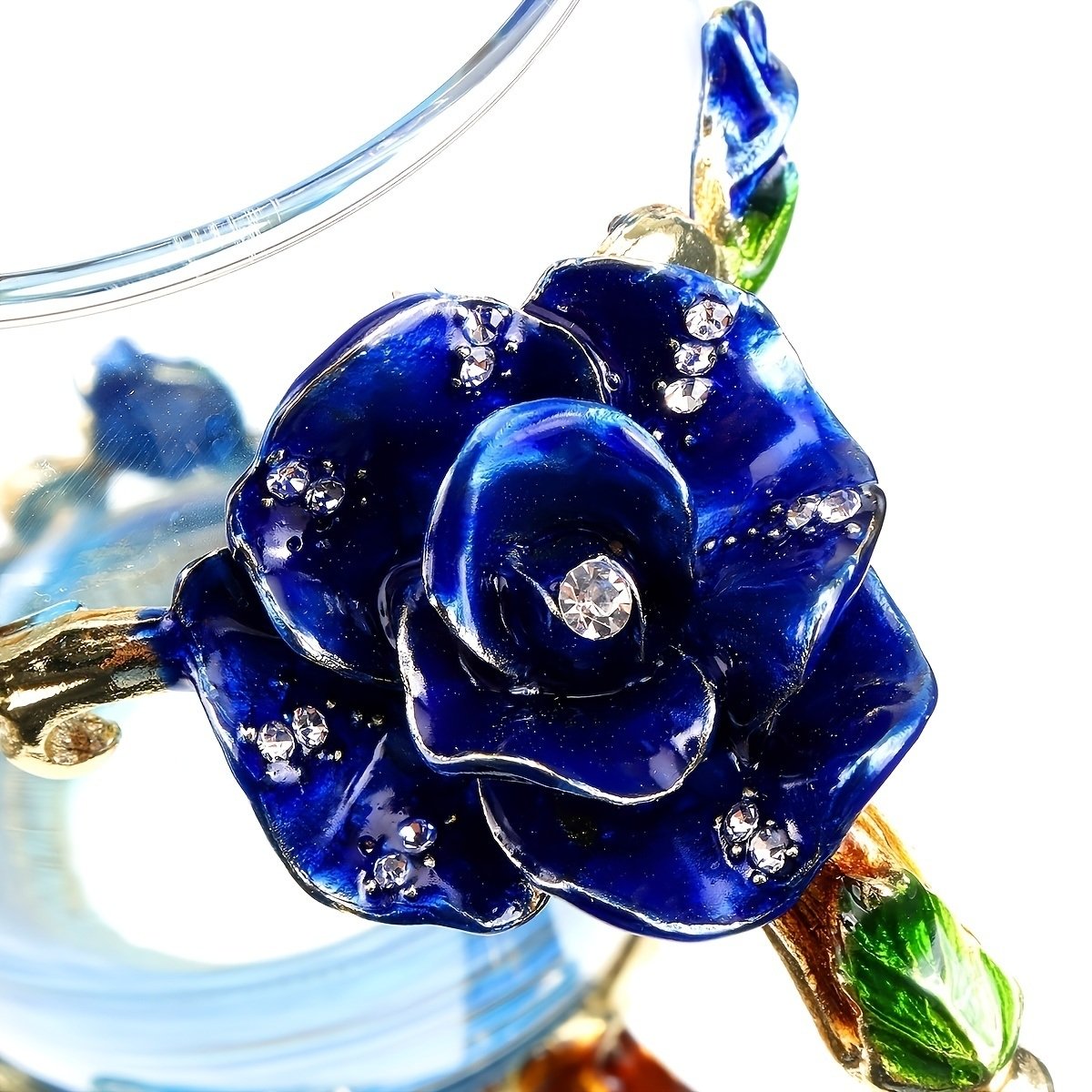 1pc Rose Enamel Crystal Tea Cup; Coffee Mug; Tumbler Butterfly Rose Painted Flower Water Cups; Clear Glass With Spoon Set