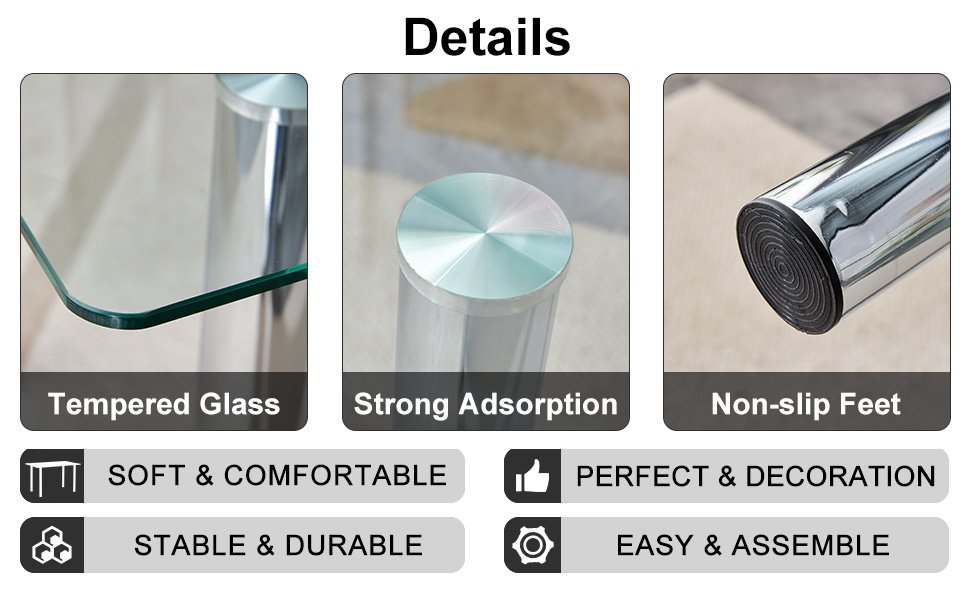 The tabletop is expertly crafted from sturdy and durable tempered glass, easy to wipe clean with a damp cloth.