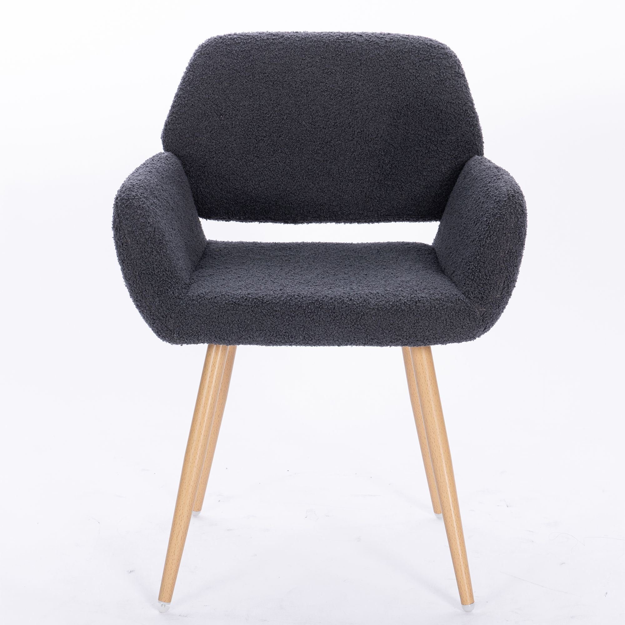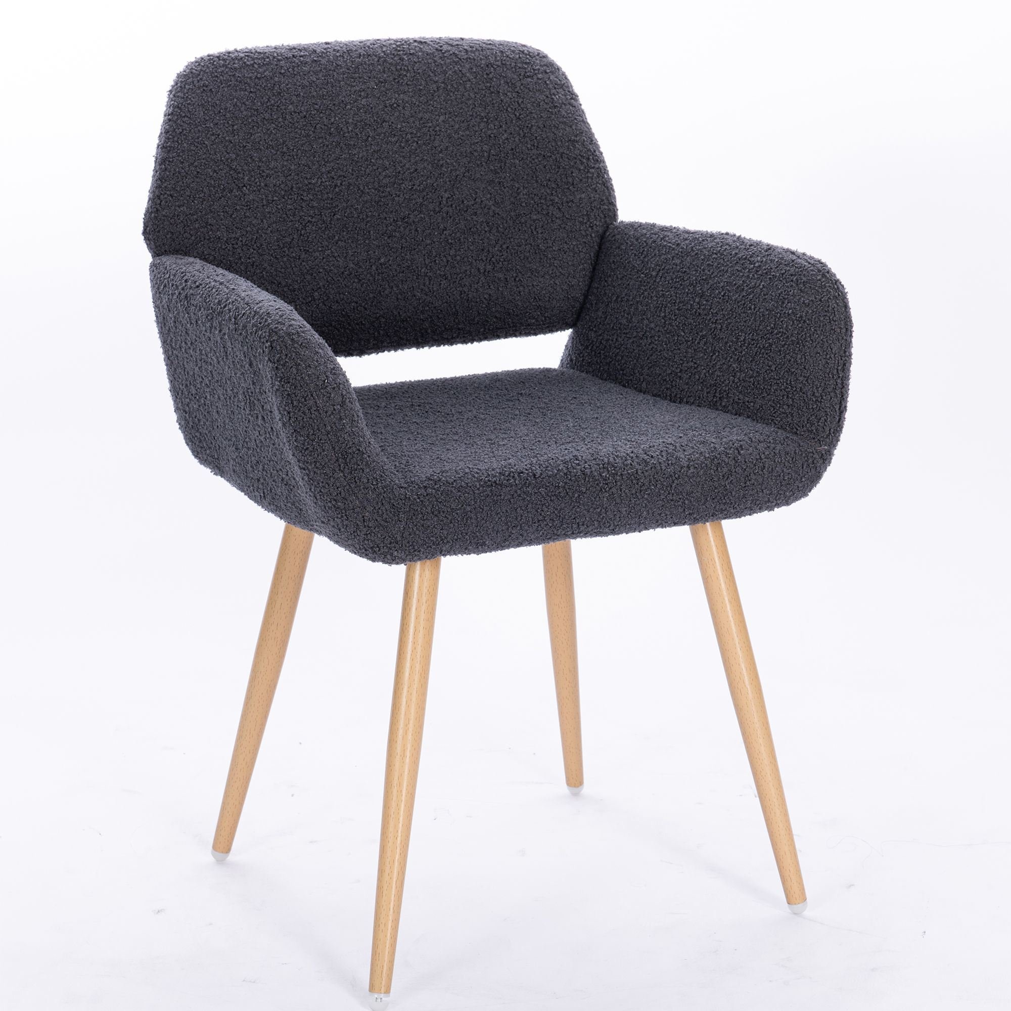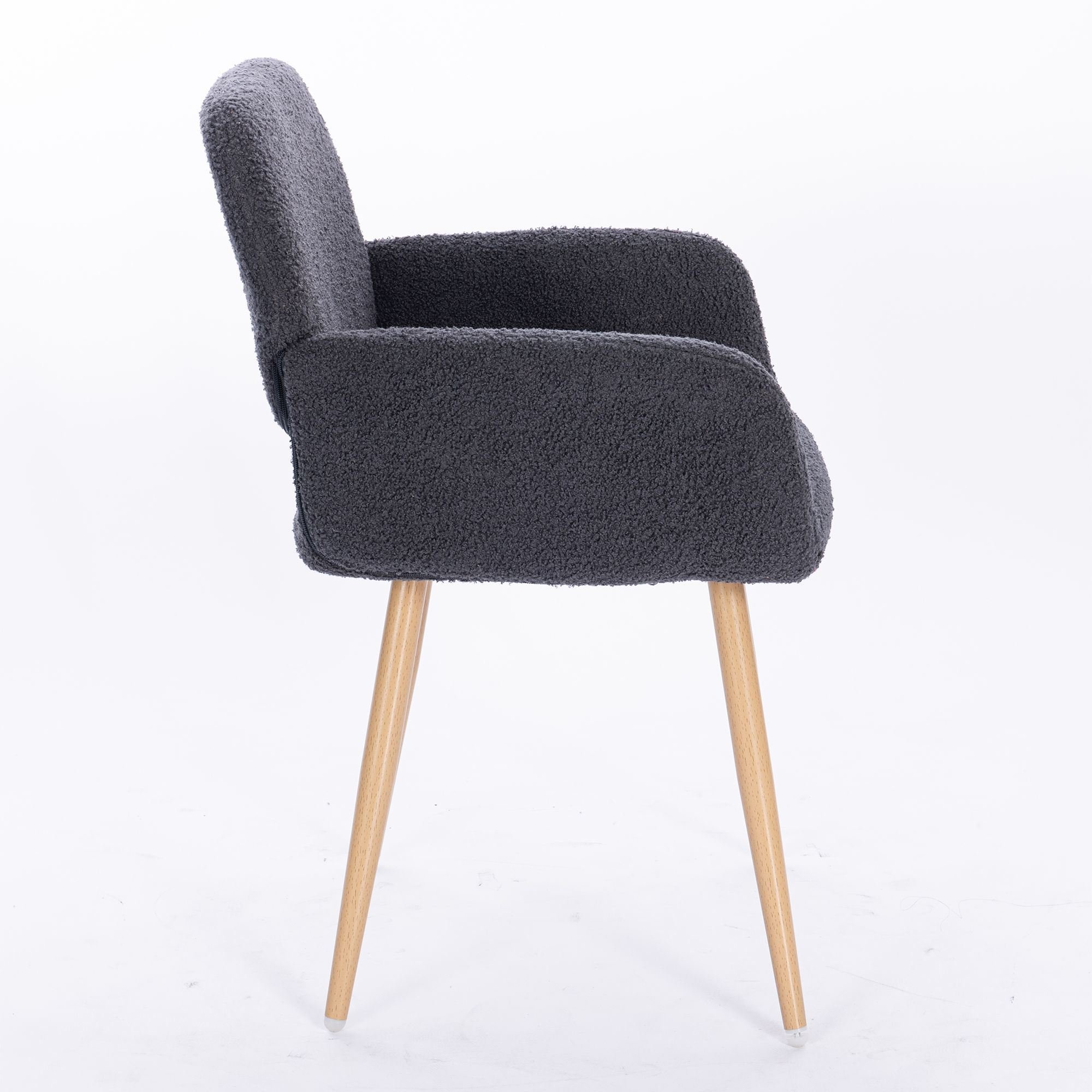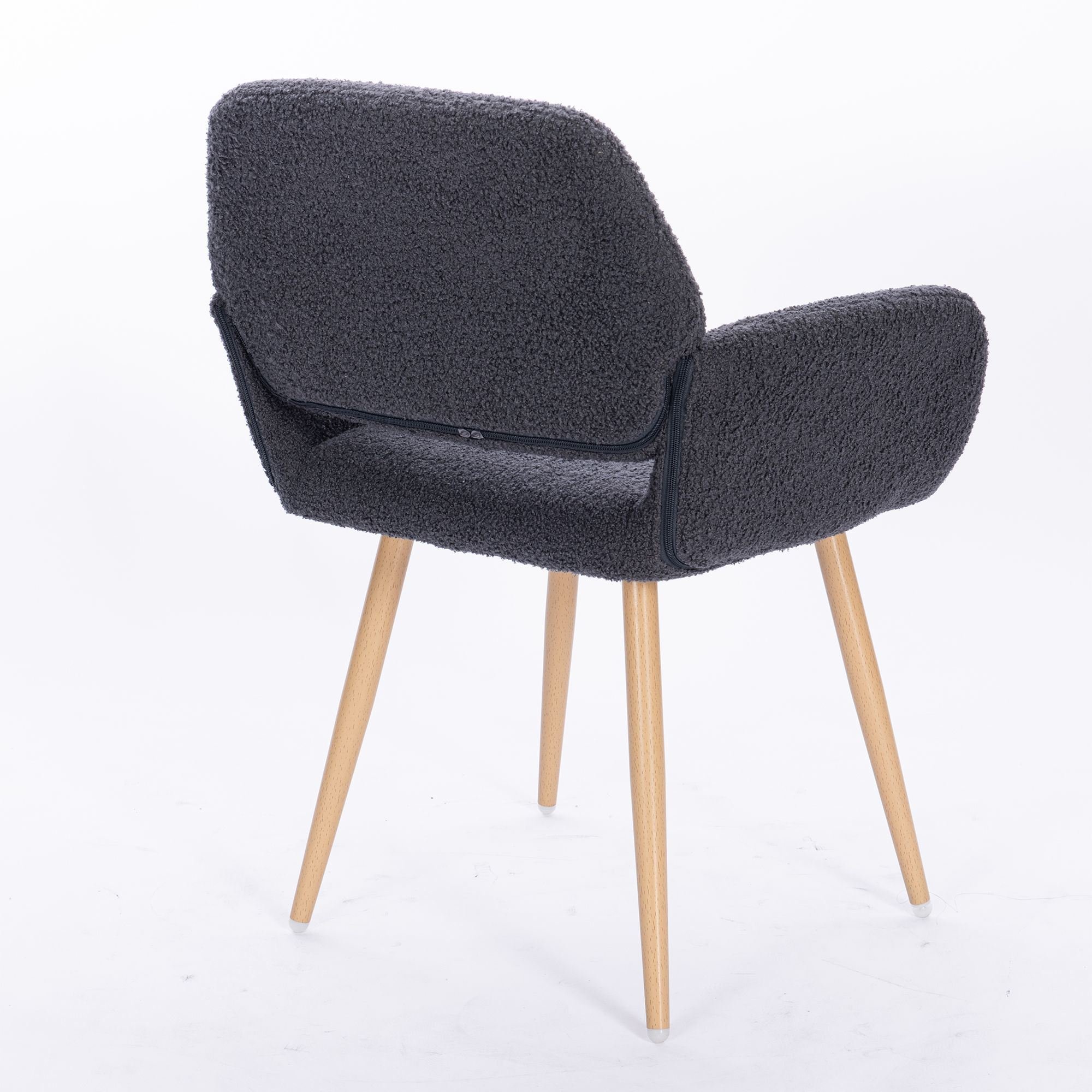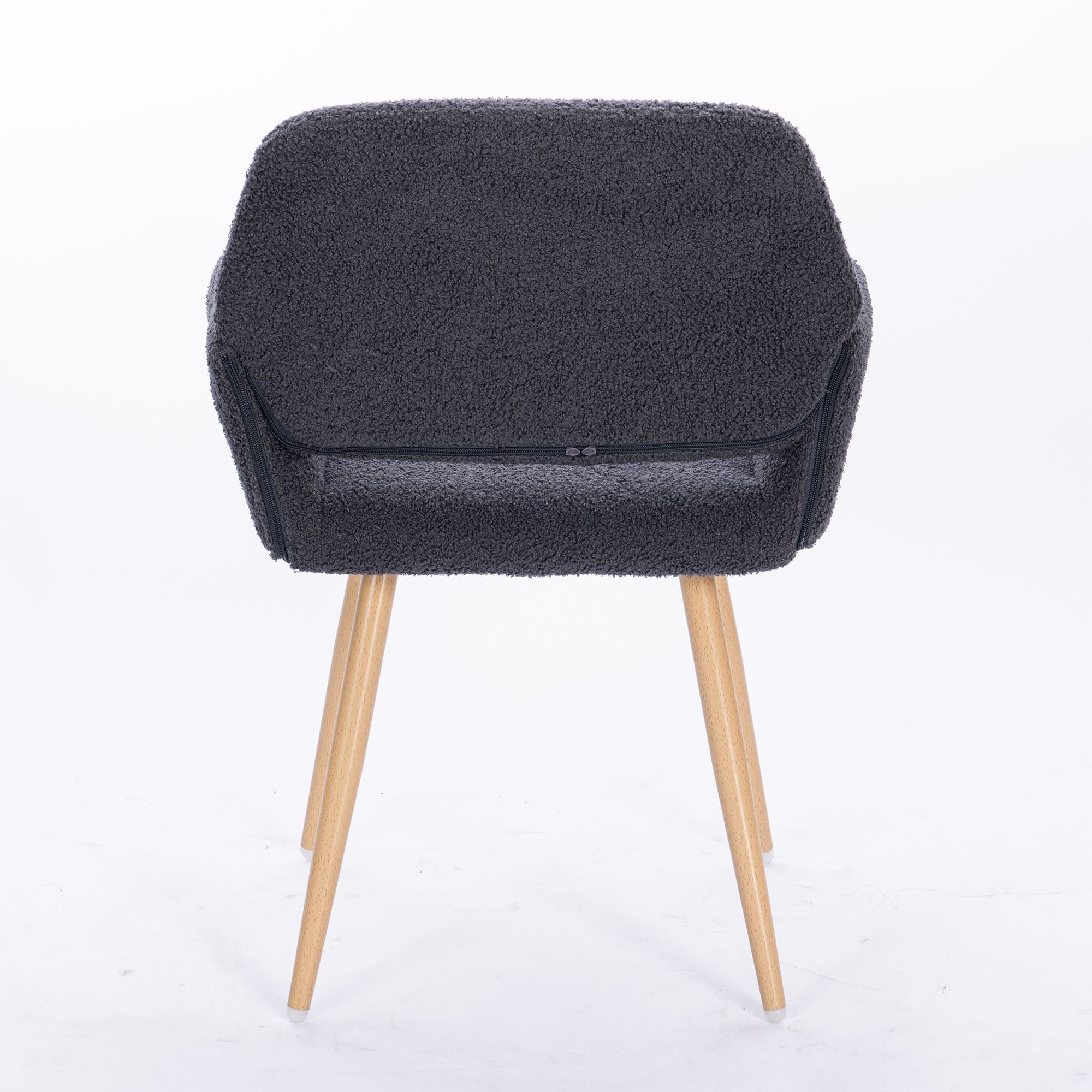 Teddy Fabric Upholstered Side Dining Chair with Metal Leg(Dark grey teddy fabric+Beech Wooden Printing Leg),KD backrest