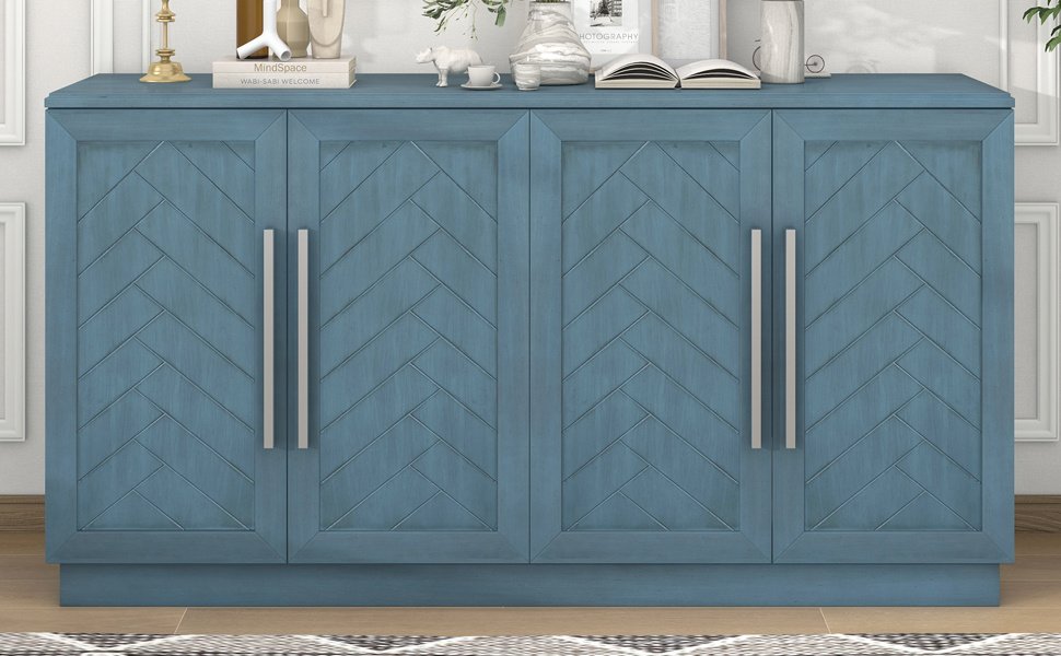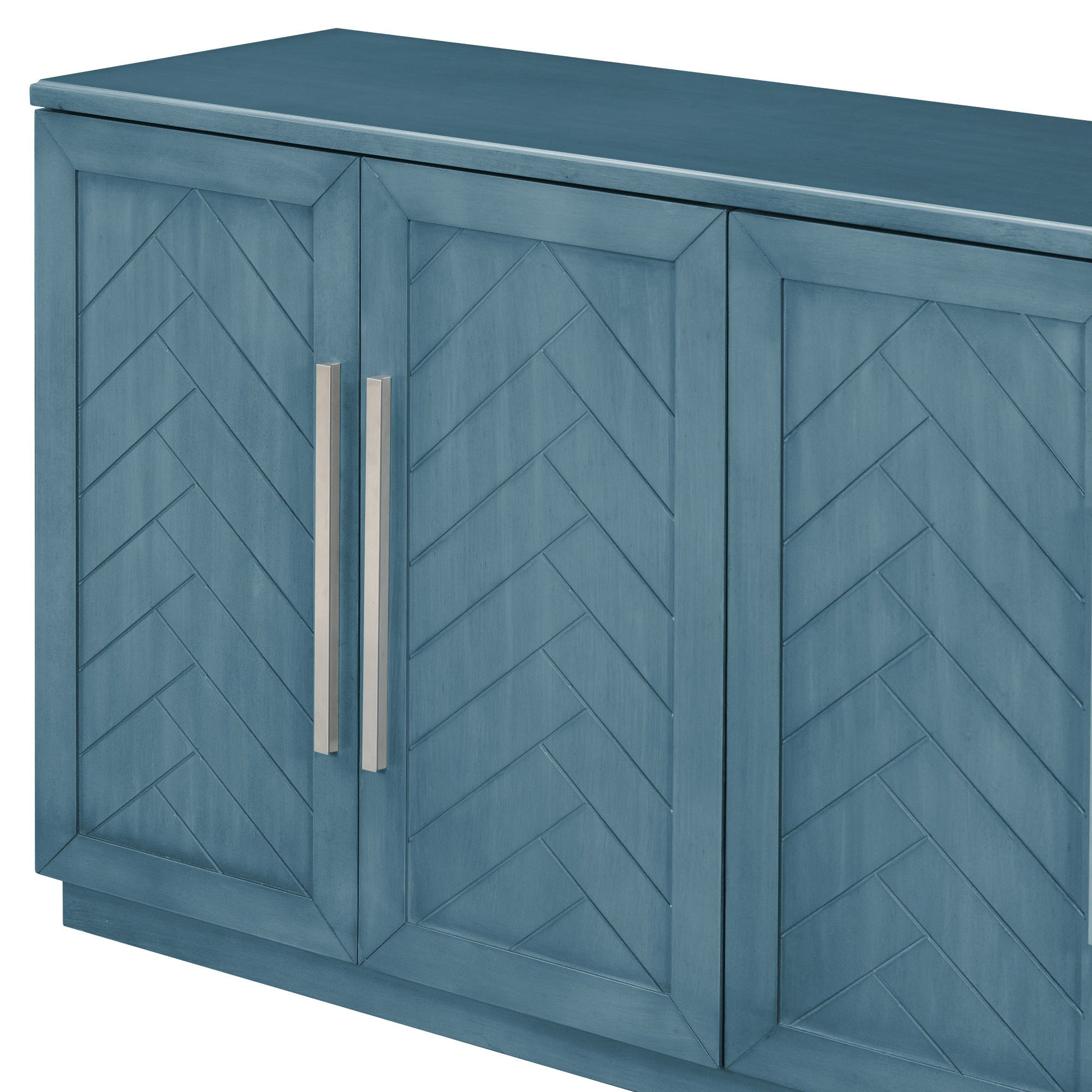 TREXM Sideboard with 4 Doors Large Storage Space Buffet Cabinet with Adjustable Shelves and Silver Handles for Kitchen, Dining Room, Living Room (Anti